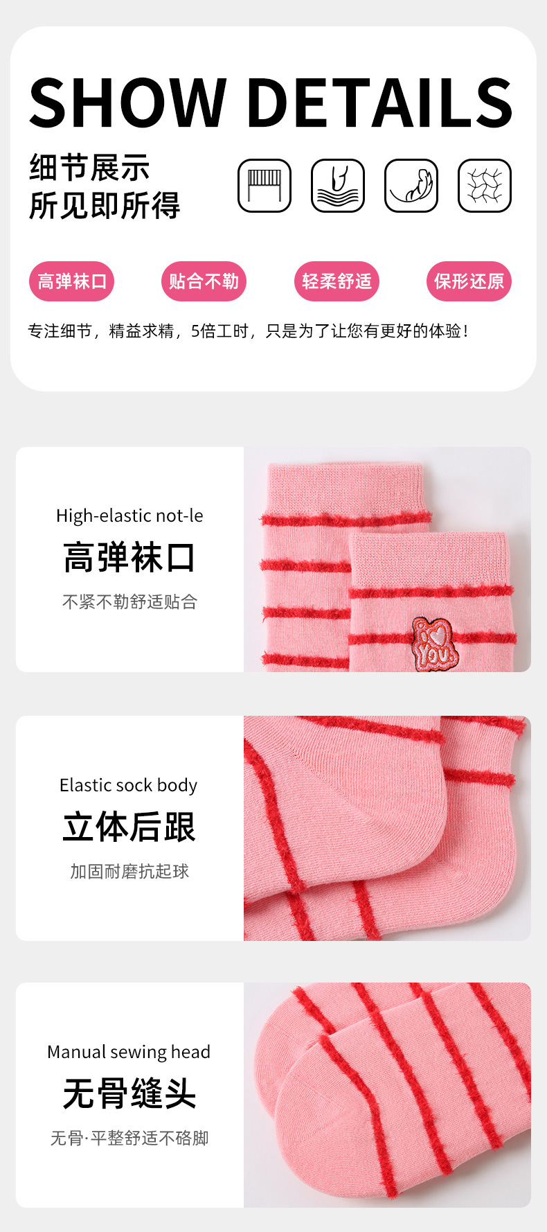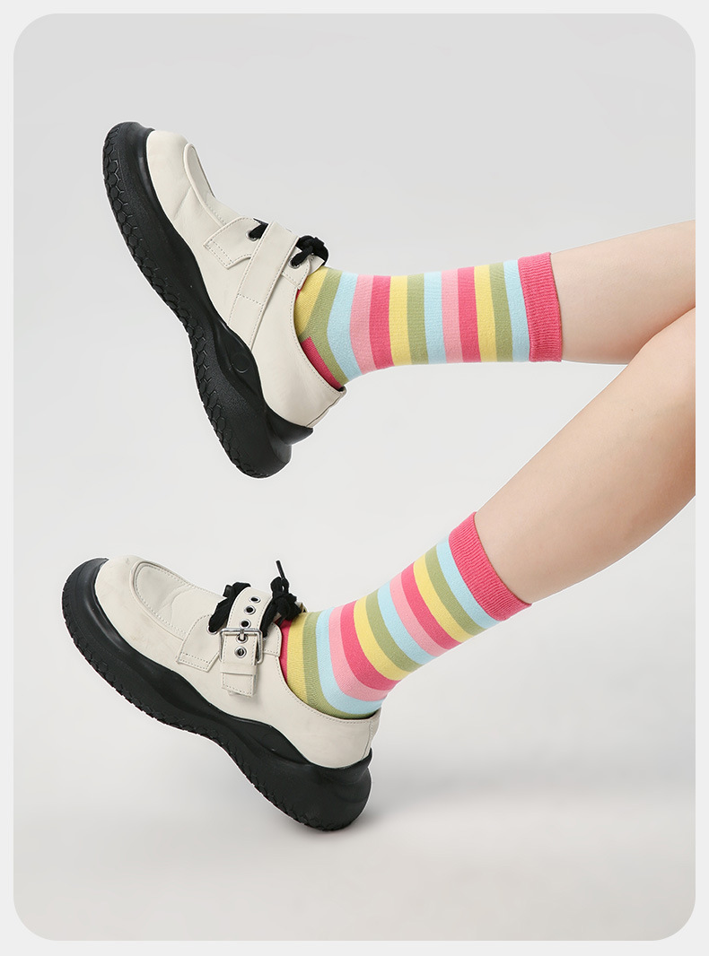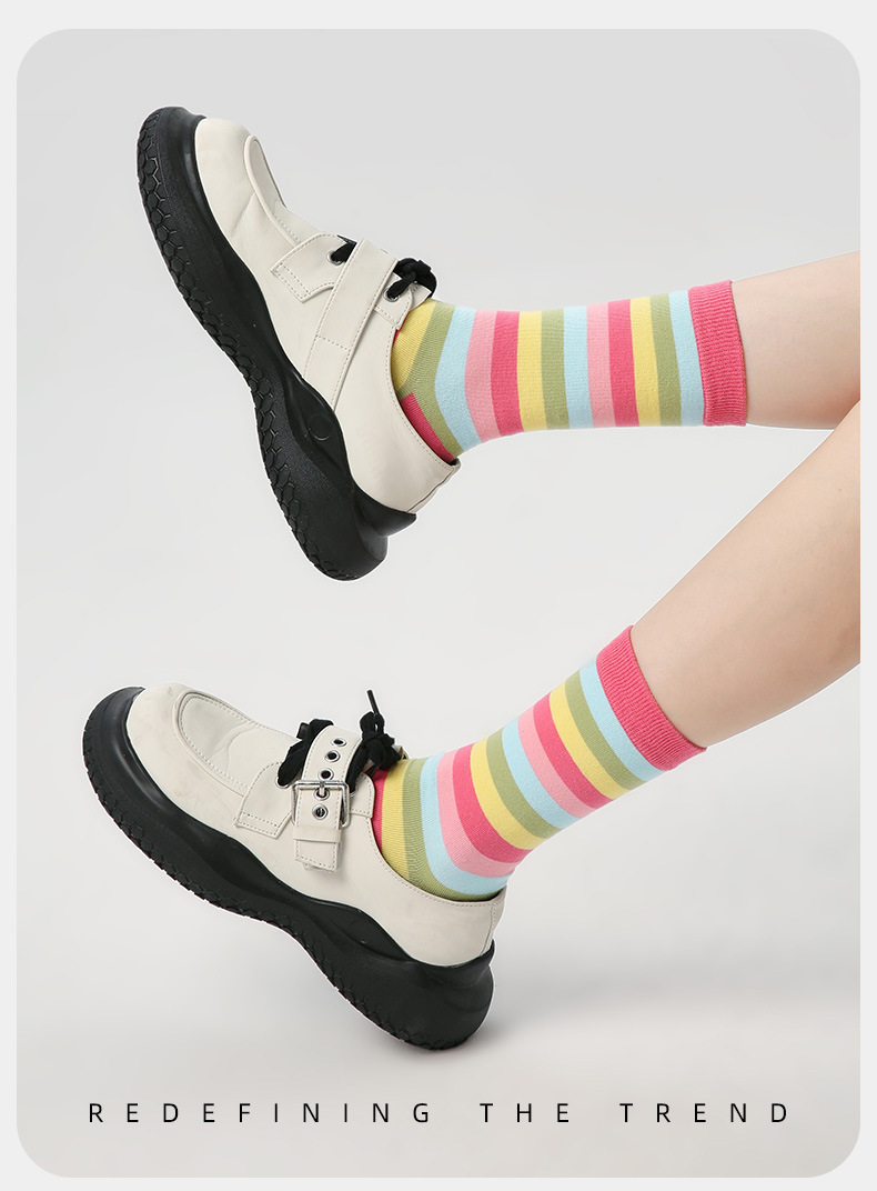 女袜粉色条纹少女风多巴胺潮袜秋季精梳棉ins潮袜无骨中筒袜子女