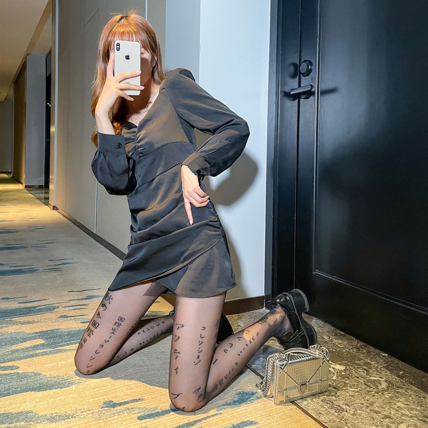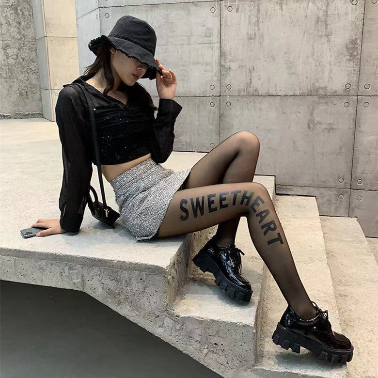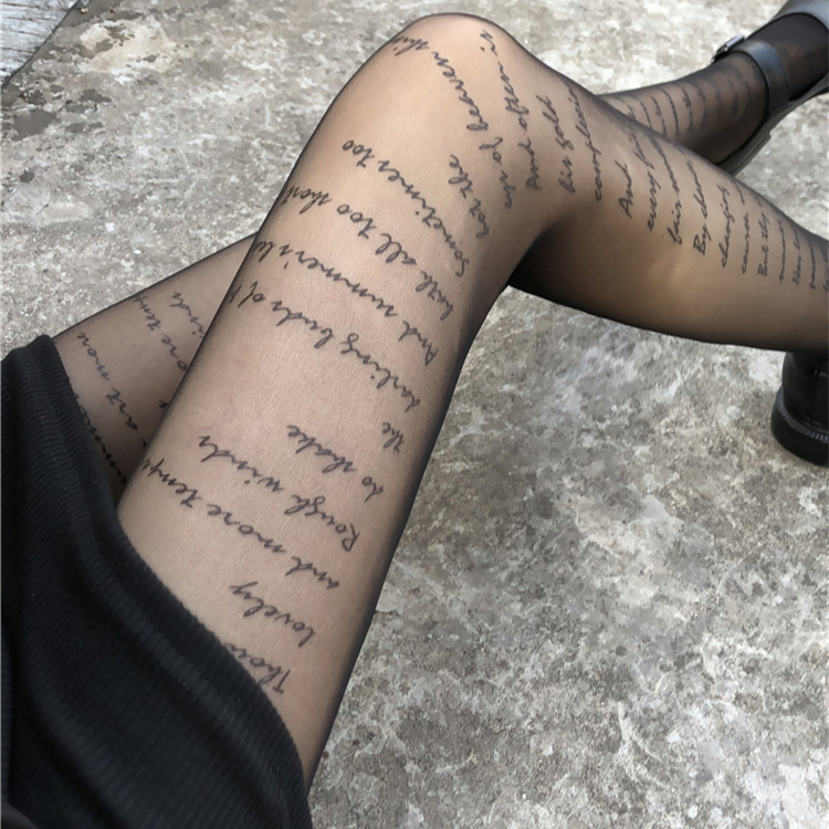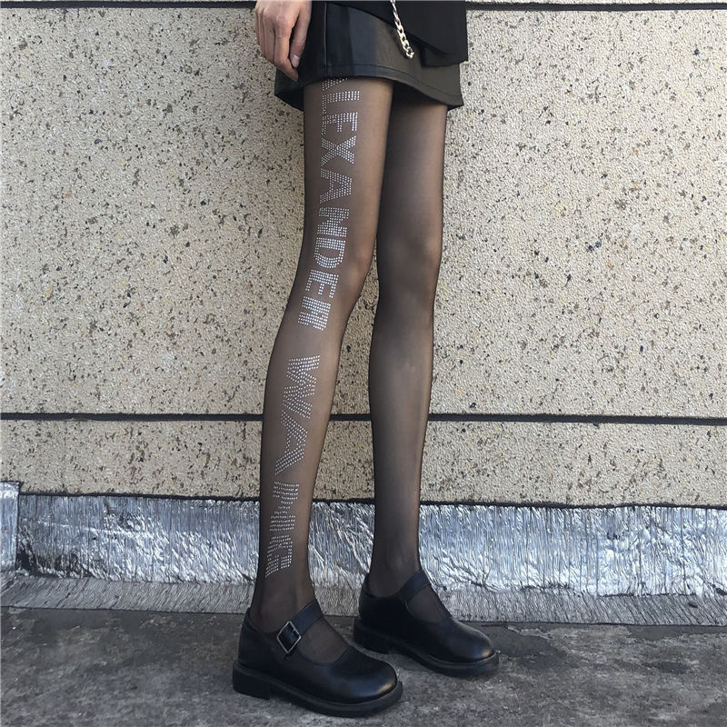 潮流印花丝袜网红B字母植绒烫钻连裤袜新款时尚防勾丝任意剪袜子