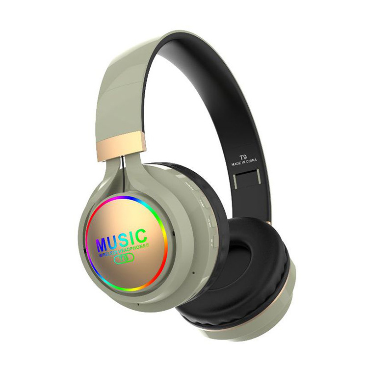 T9 外贸爆款低音立体声头戴式蓝牙耳机LED灯可插卡TF折叠电脑耳机