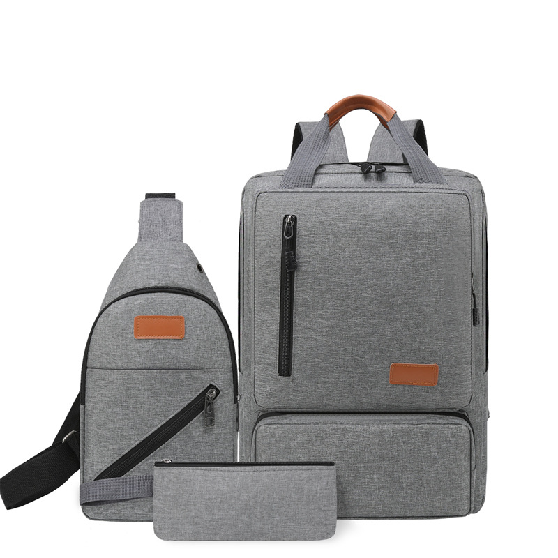 双肩包厂家直销跨境三件套双肩包大容量商务笔记本电脑包旅行包