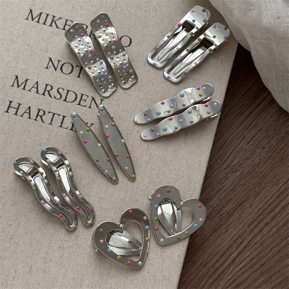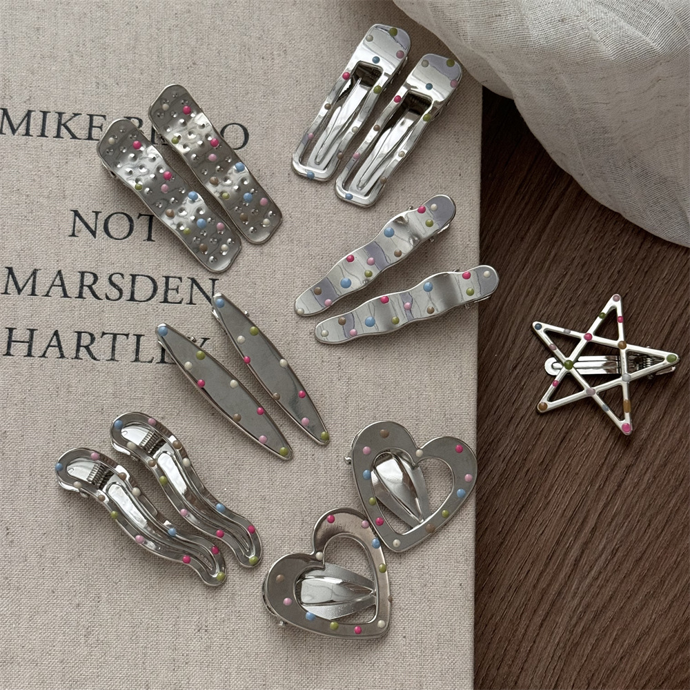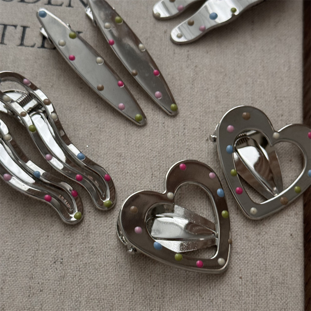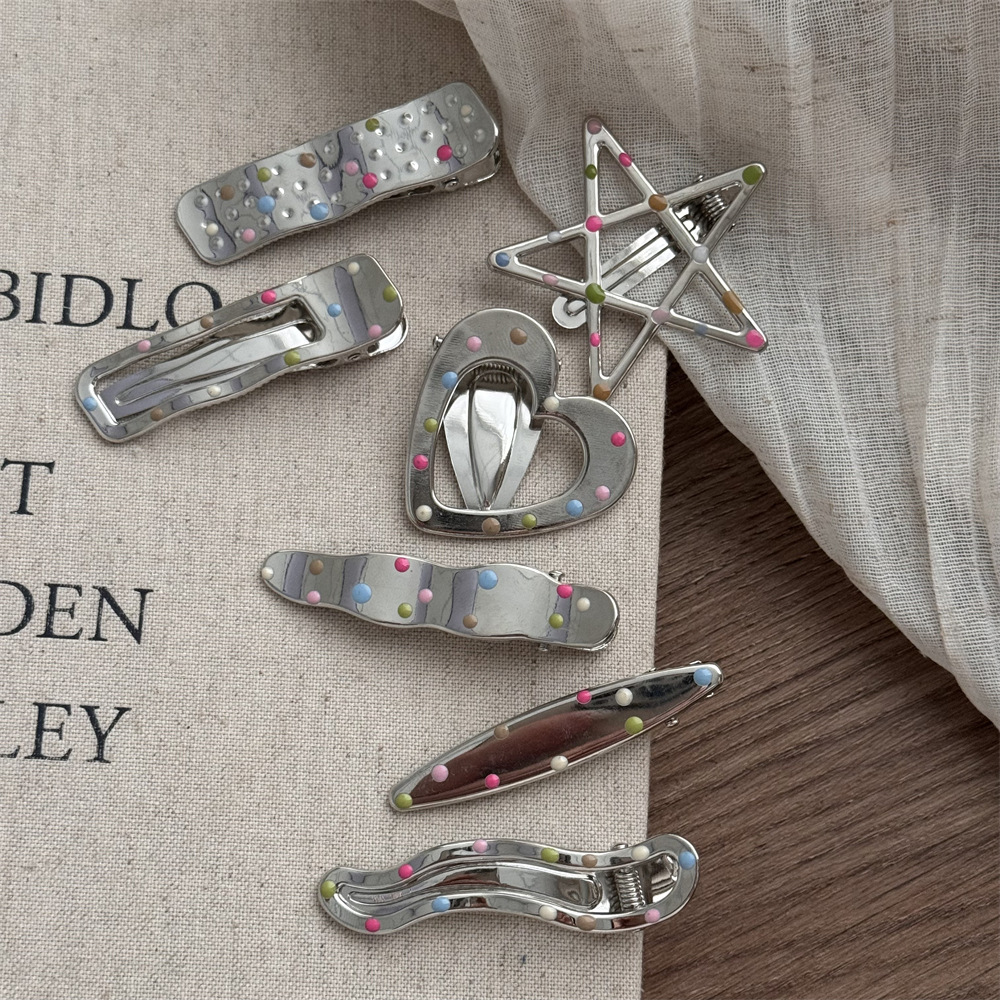 彩点点滴油银色金属发夹女侧边夹水滴夹头饰化妆发卡前额刘海夹子