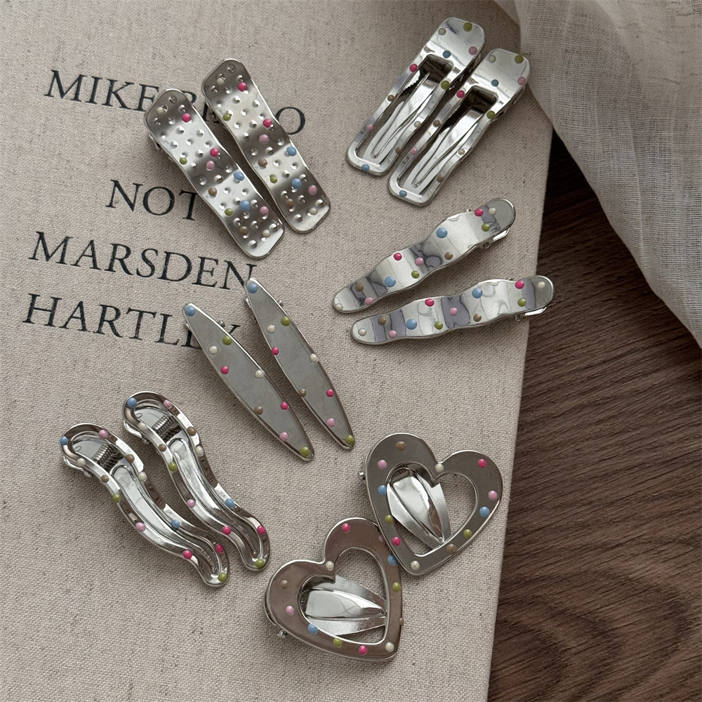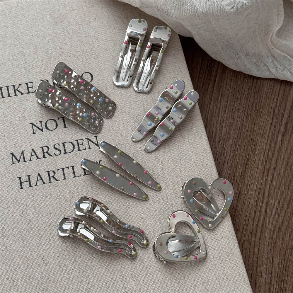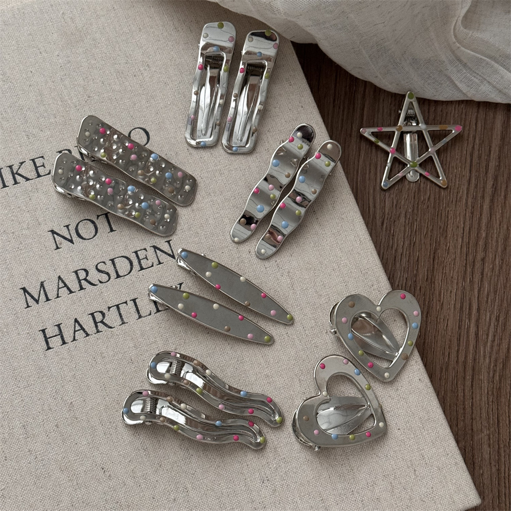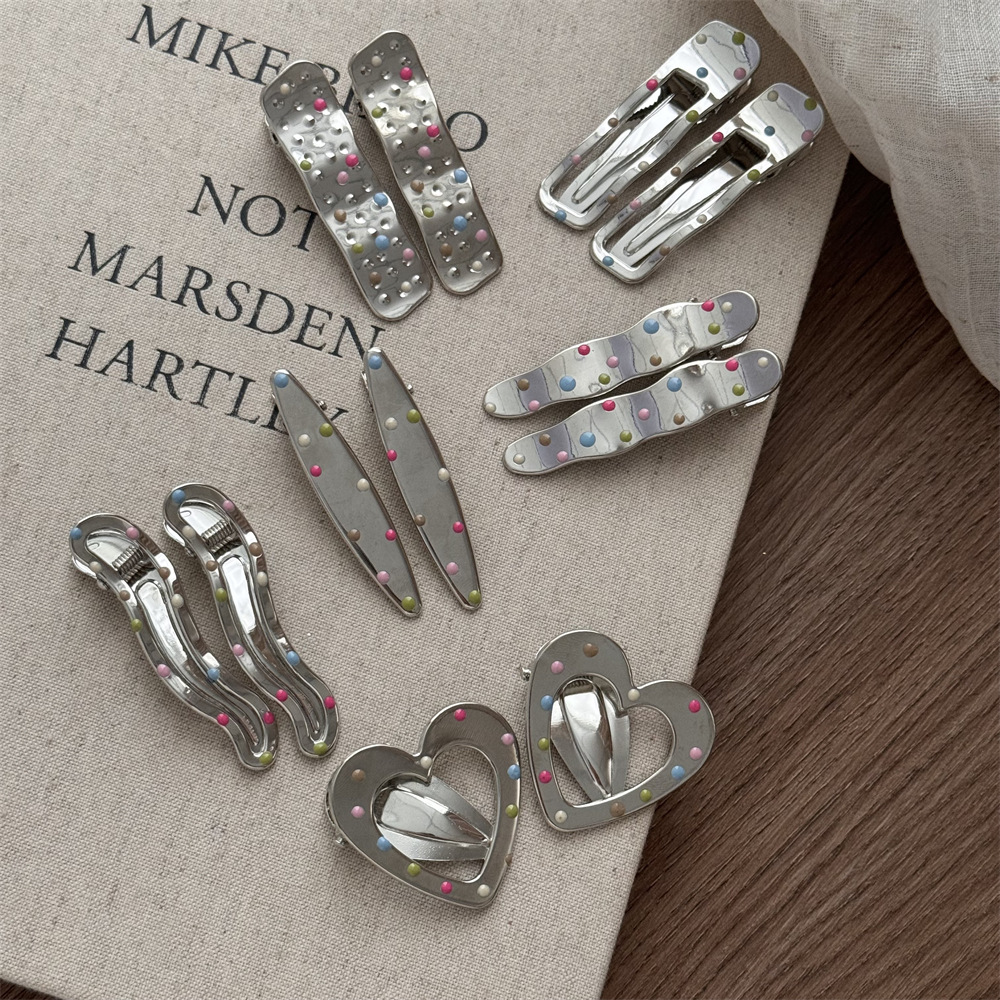 彩点点滴油银色金属发夹女侧边夹水滴夹头饰化妆发卡前额刘海夹子