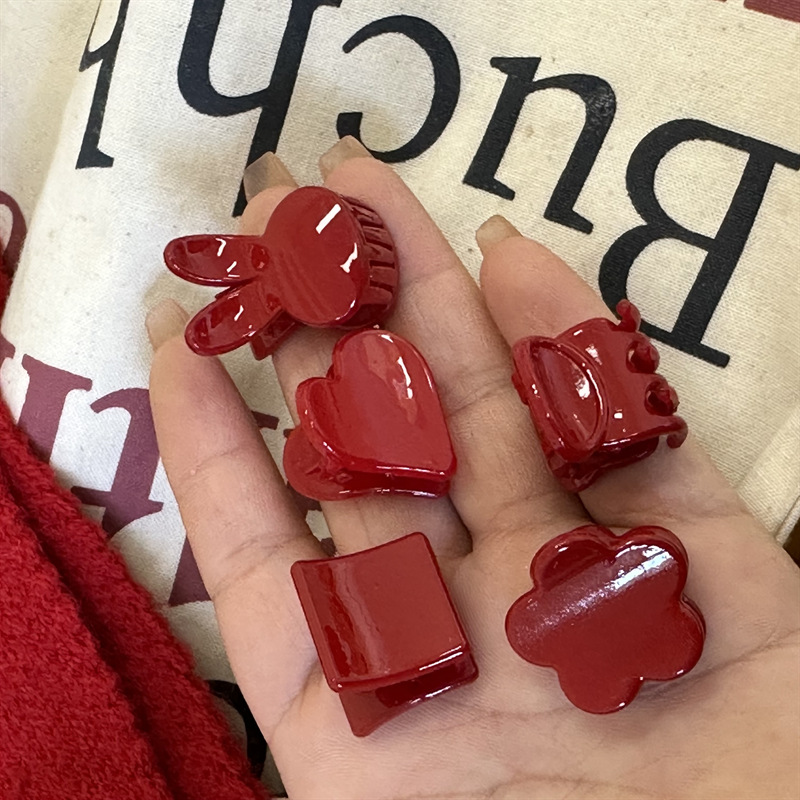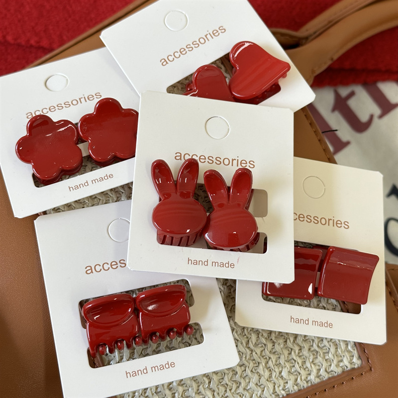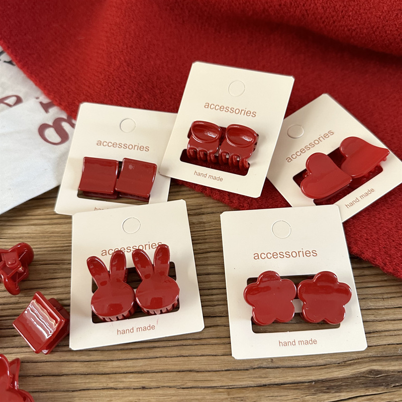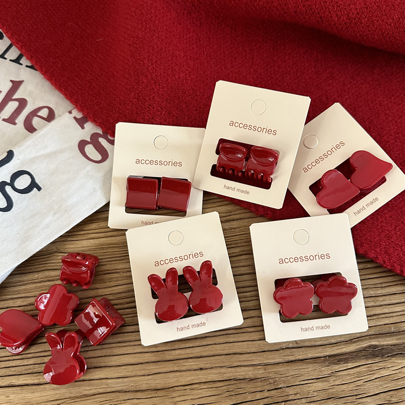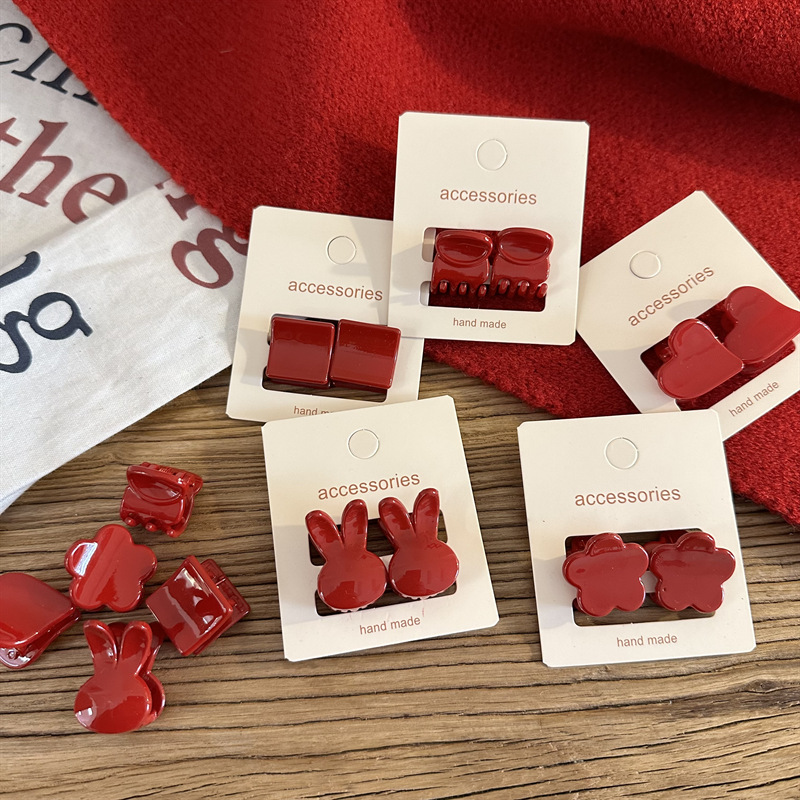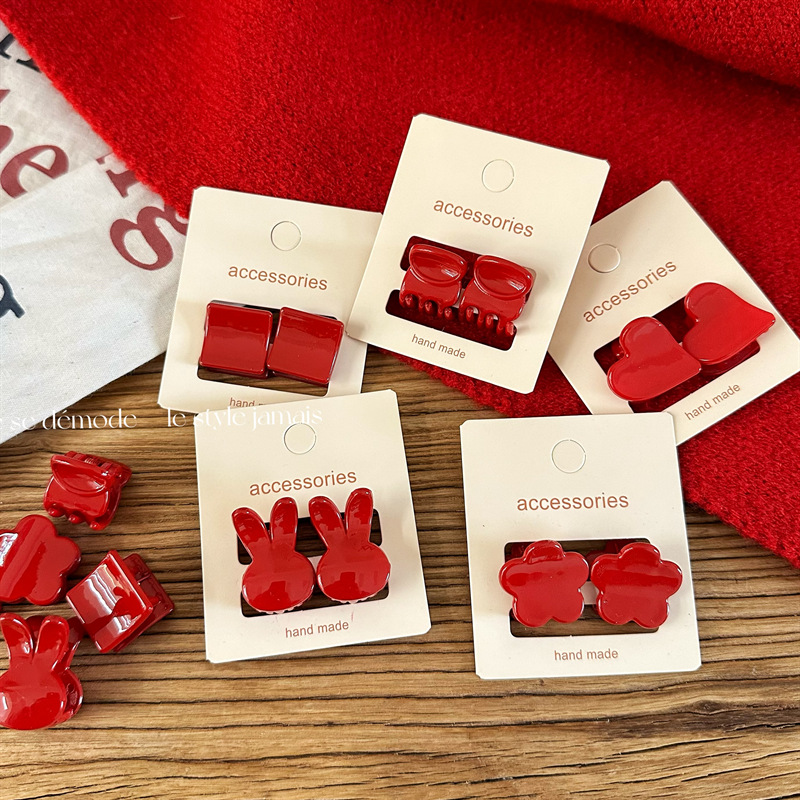 新年红节日迷你小发夹复古红边夹可爱少女心刘海夹公主头夹子头饰
