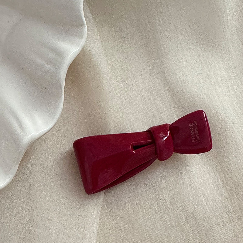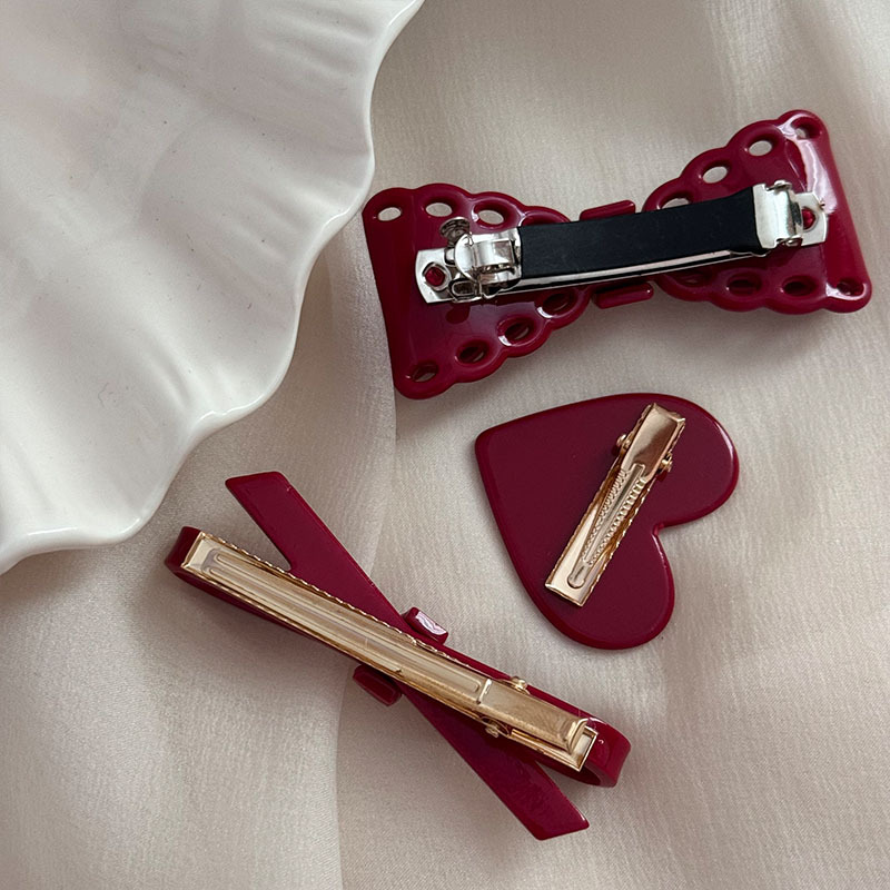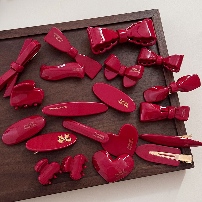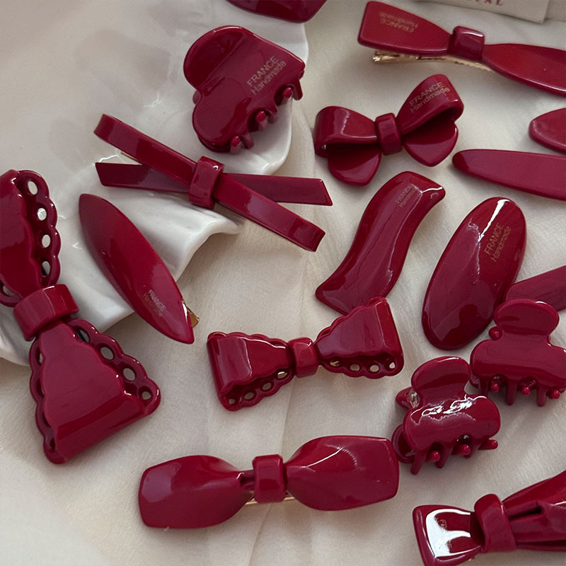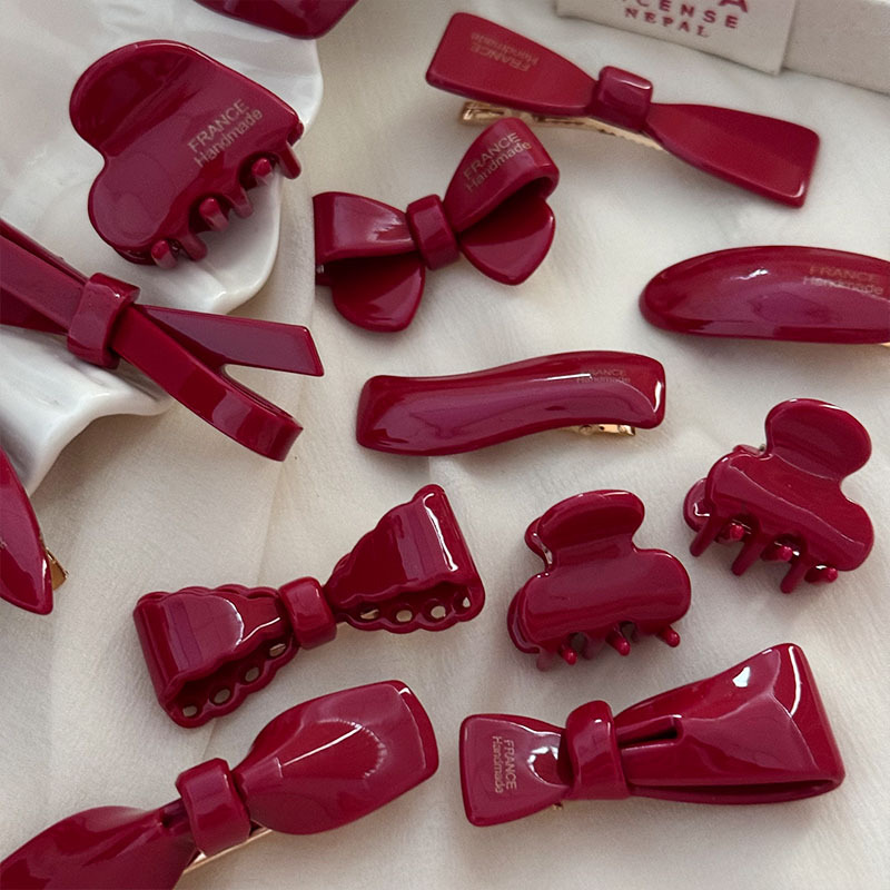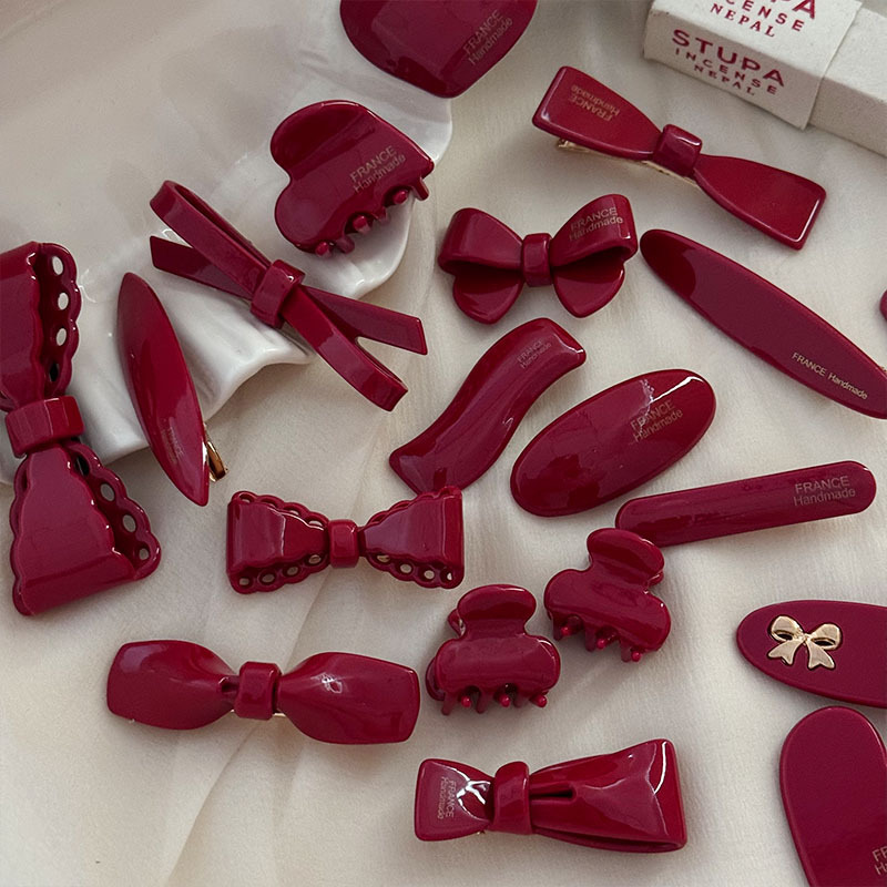新年节日氛围感顶夹酒红色蝴蝶结刘海夹鸭嘴夹甜美复古高质量发饰