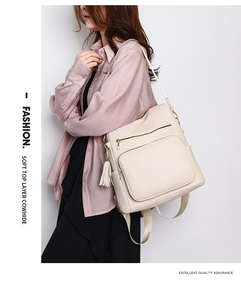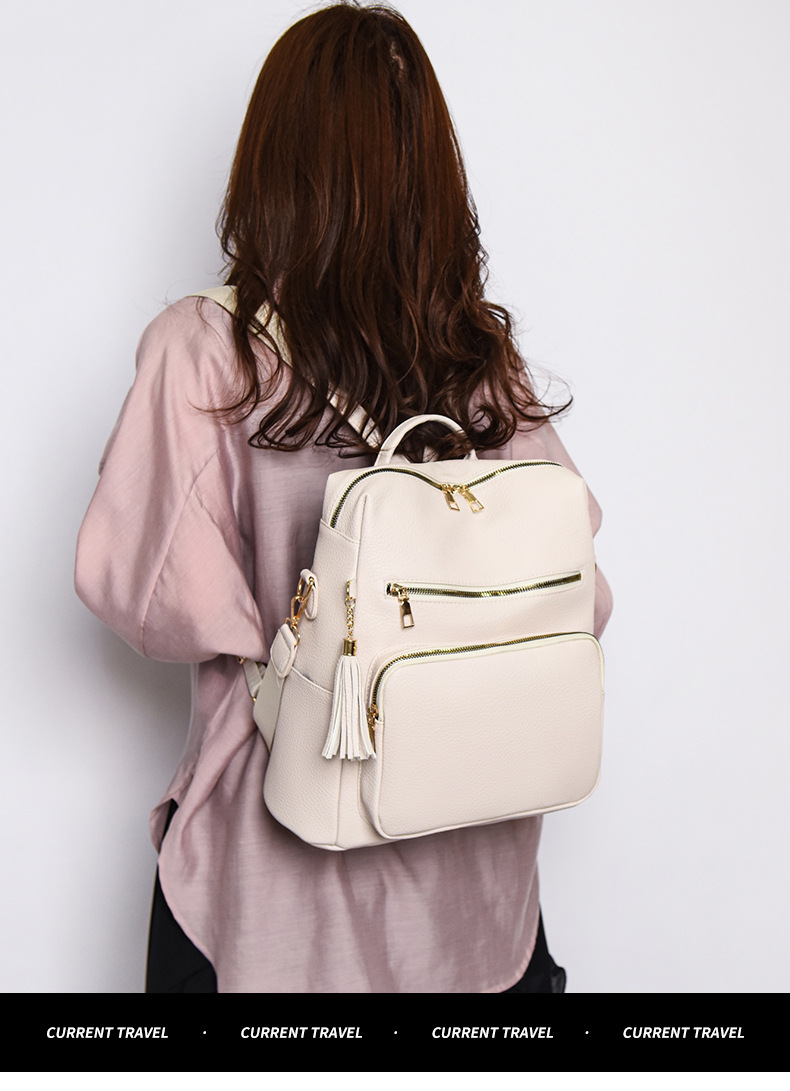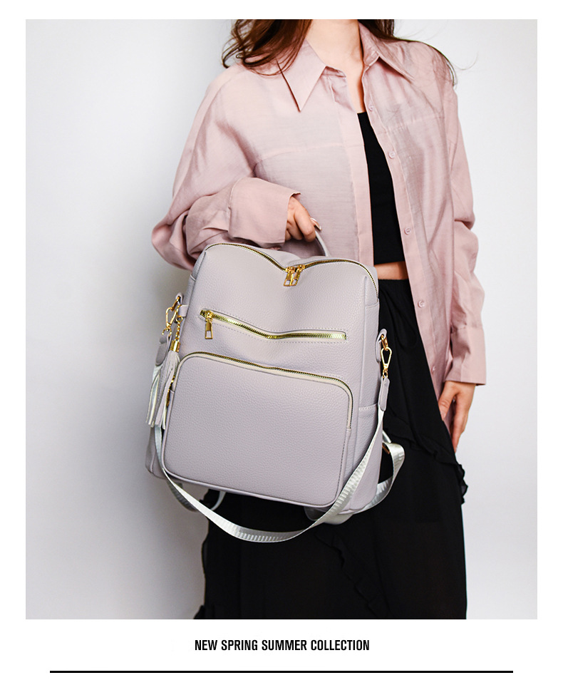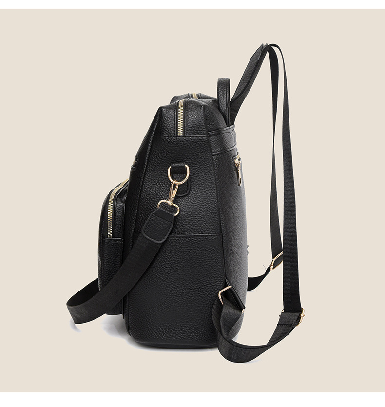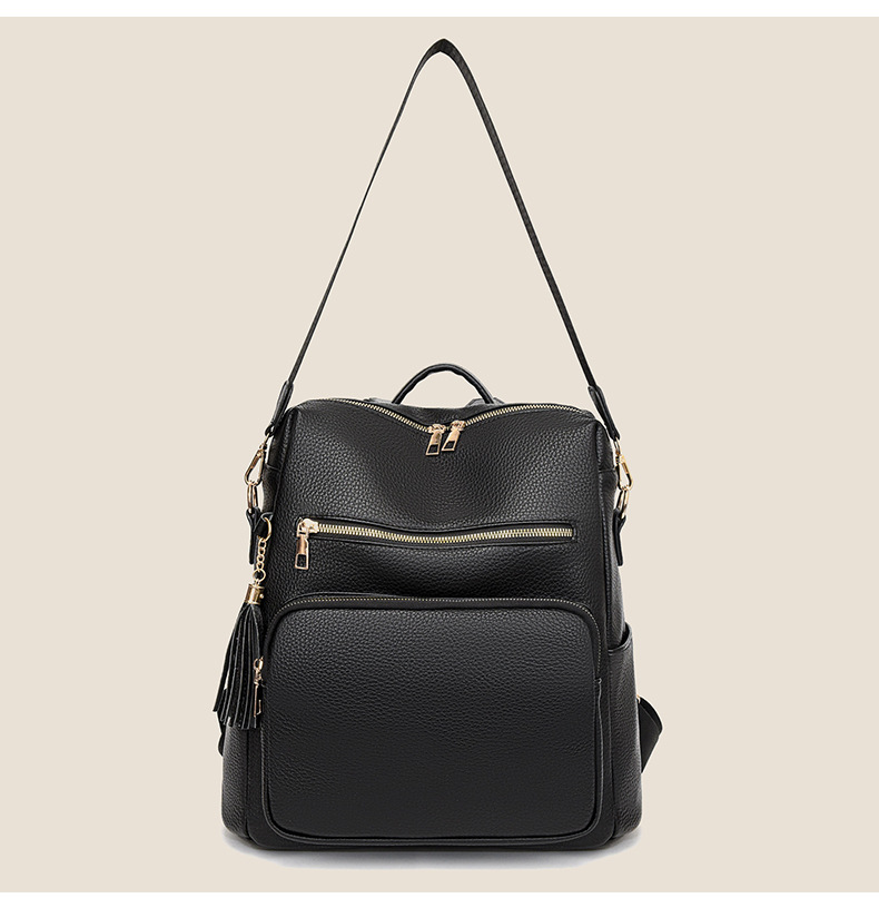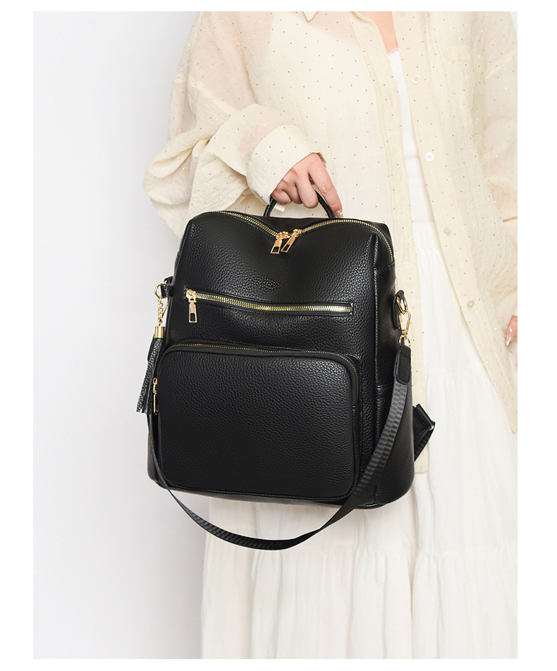 软皮质感双肩包2024新款休闲背包通勤旅行手提单肩包