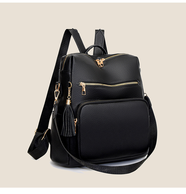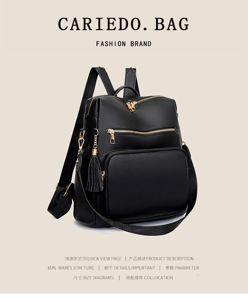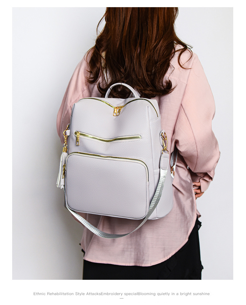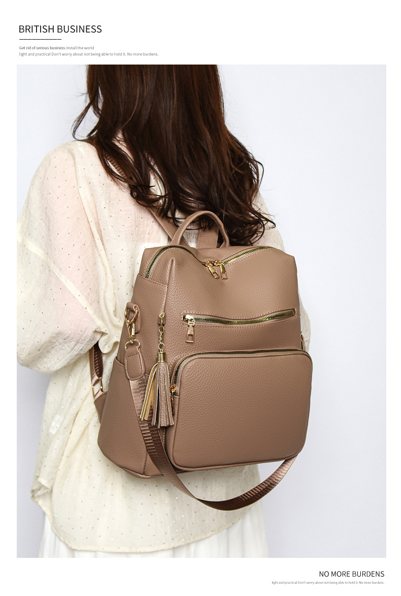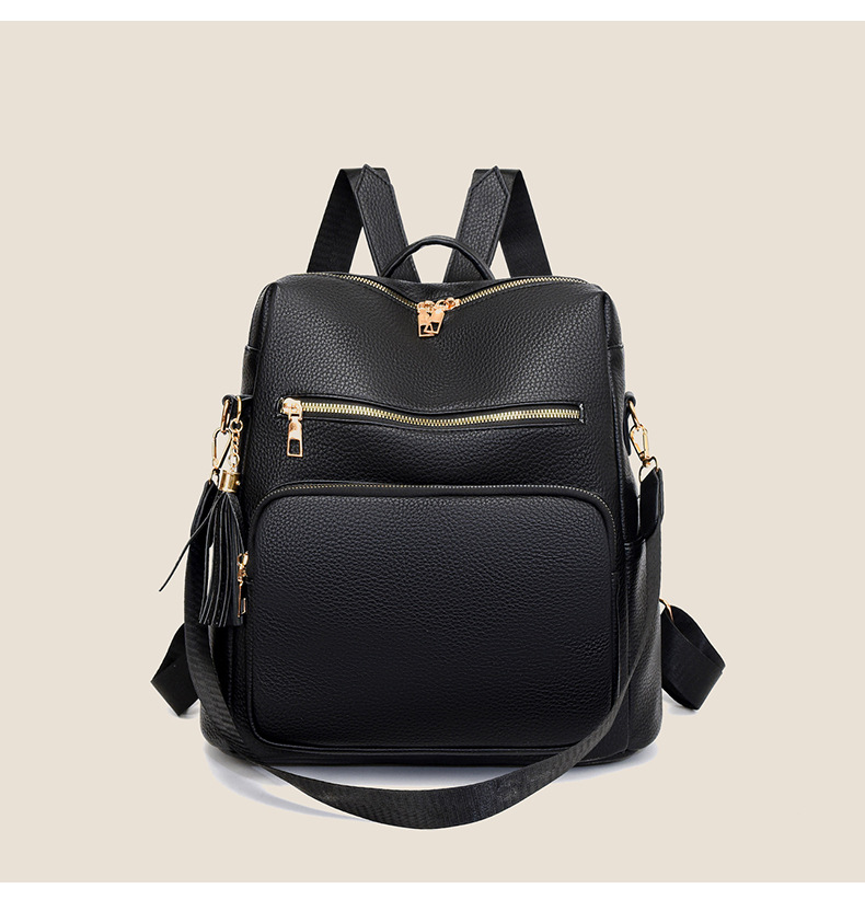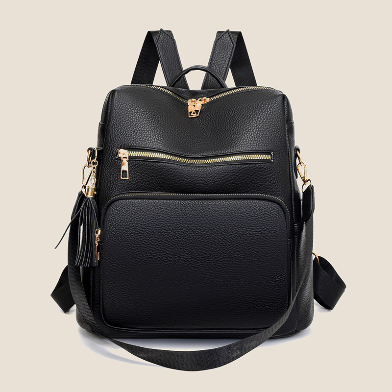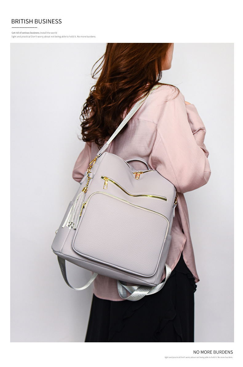 软皮质感双肩包2024新款休闲背包通勤旅行手提单肩包