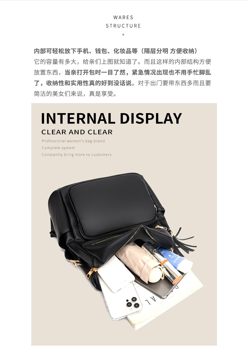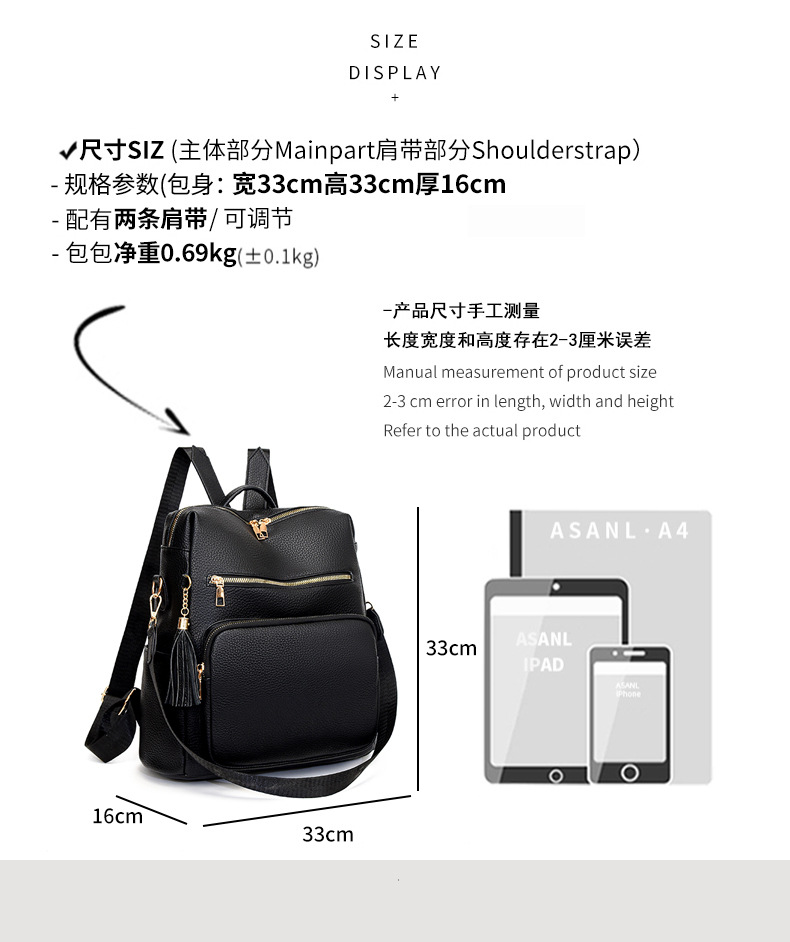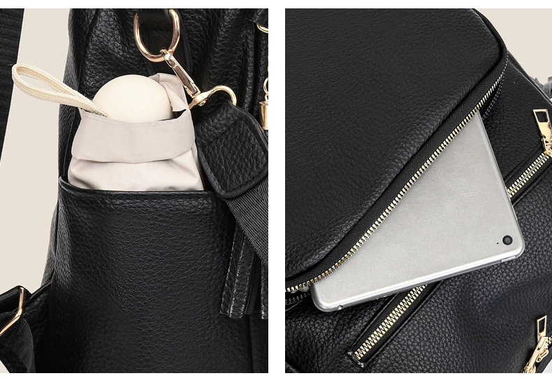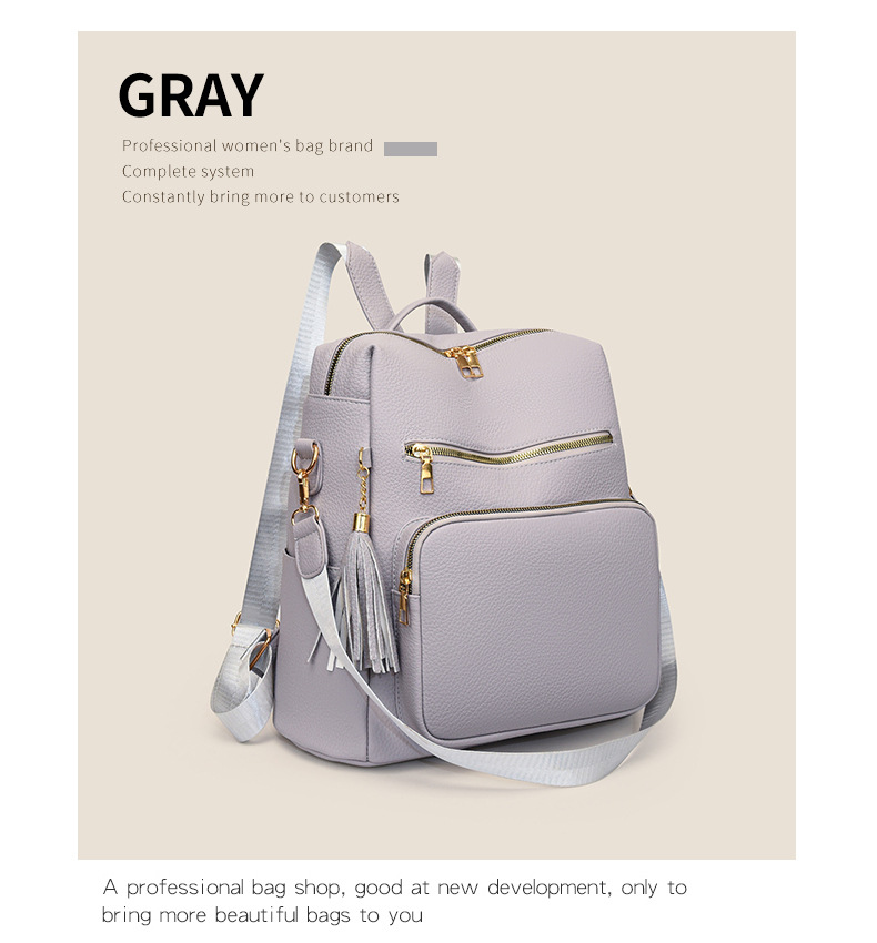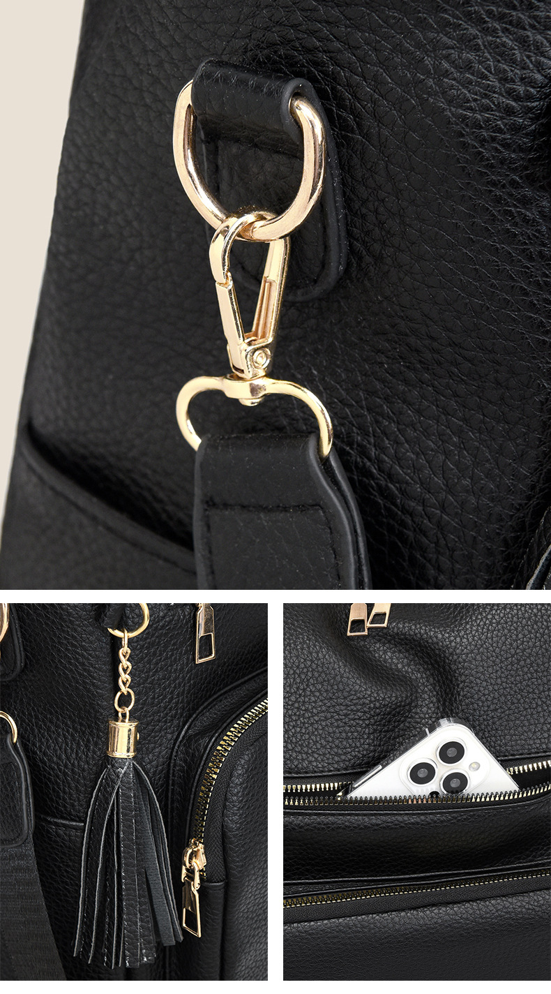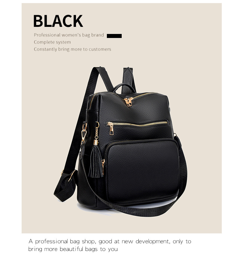 软皮质感双肩包2024新款休闲背包通勤旅行手提单肩包