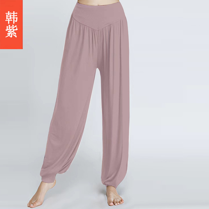 新款外贸跨境瑜伽裤莫代尔练功运动长裤广场舞蹈裤宽松大码灯笼裤