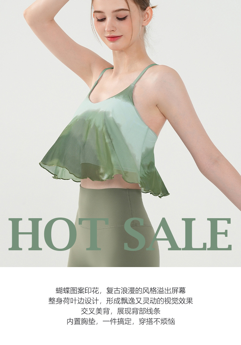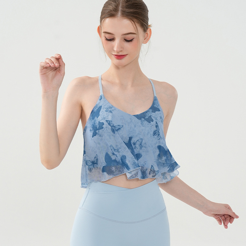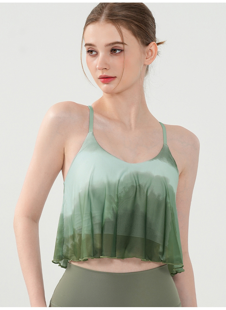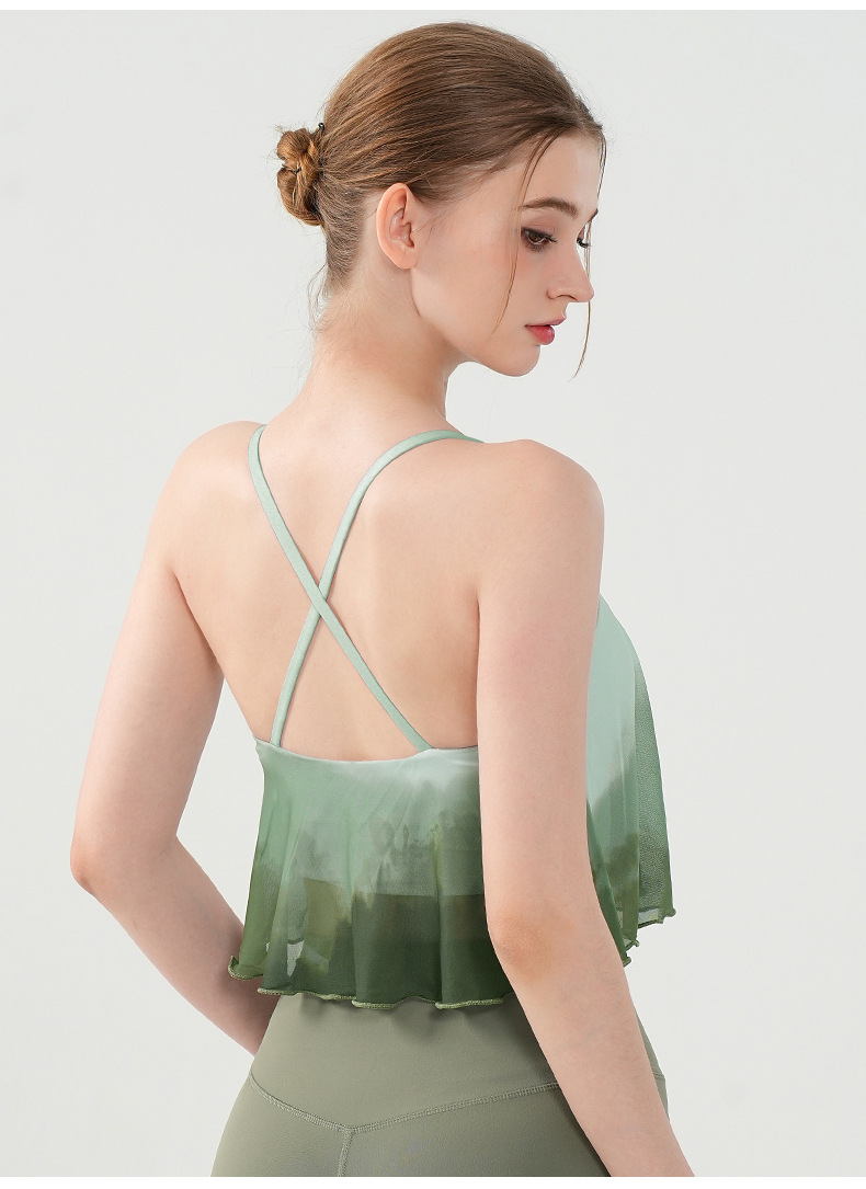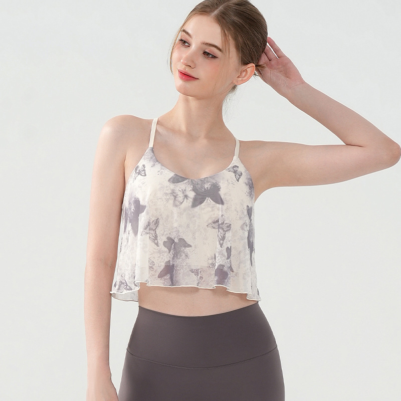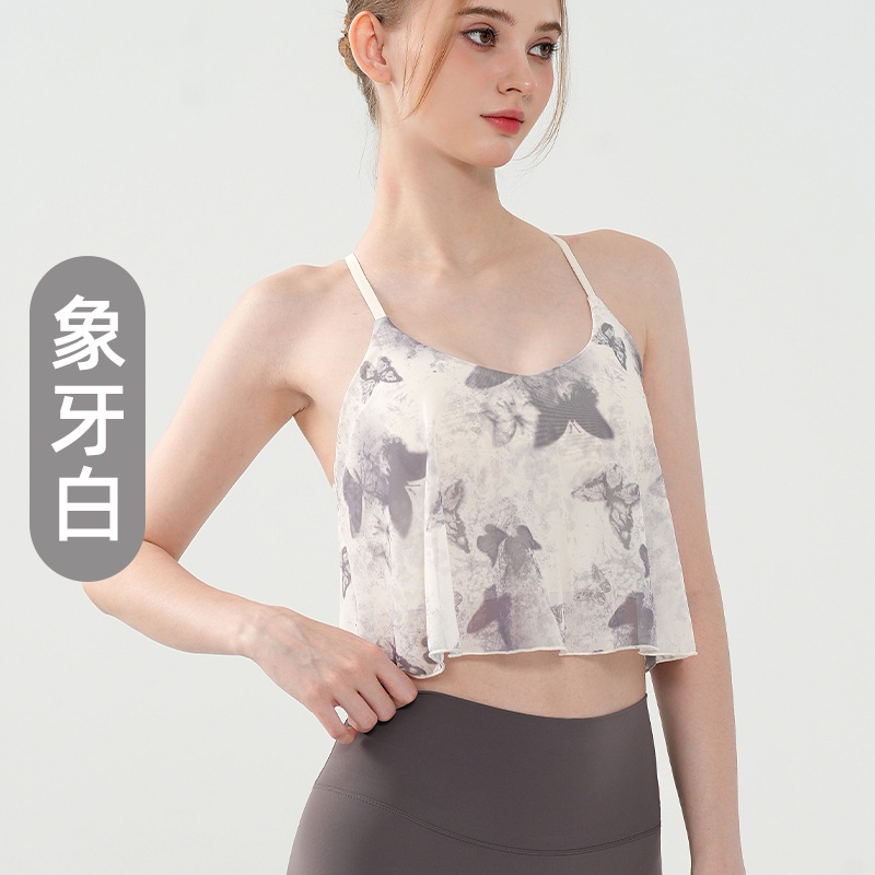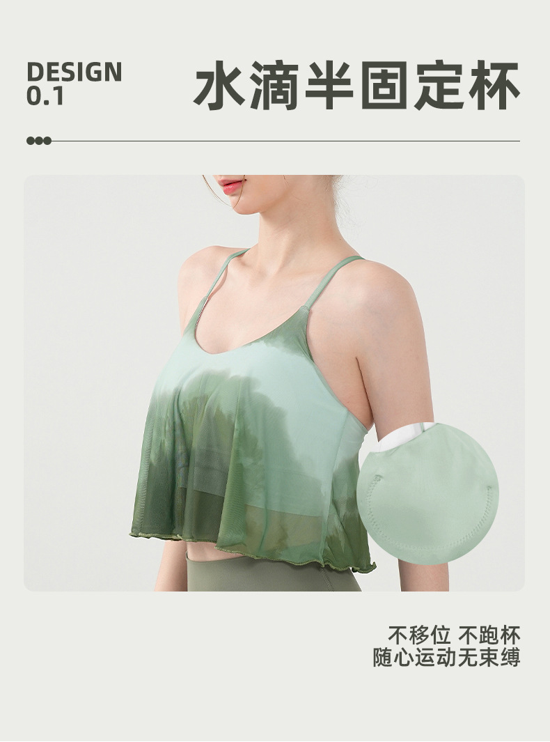 云感透气网纱瑜伽文胸女固定杯健身上衣防震外穿背心跑步运动内衣