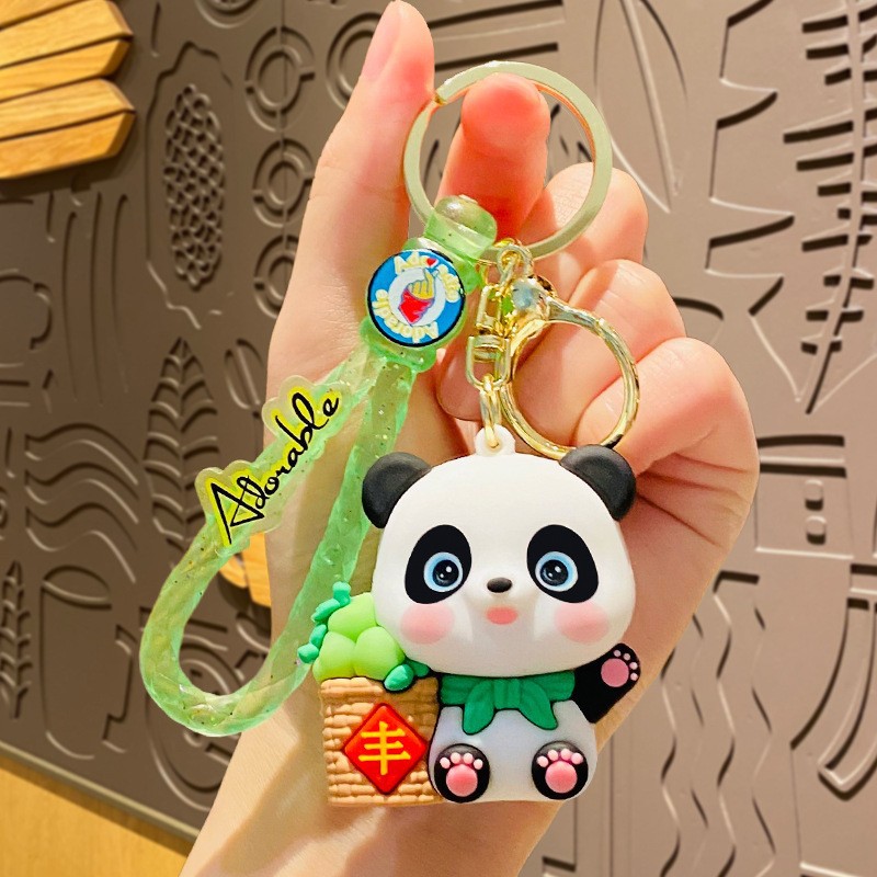正版草帽小伙伴熊猫系列手绳扣钥匙扣铃铛挂件创意卡通小礼品批发