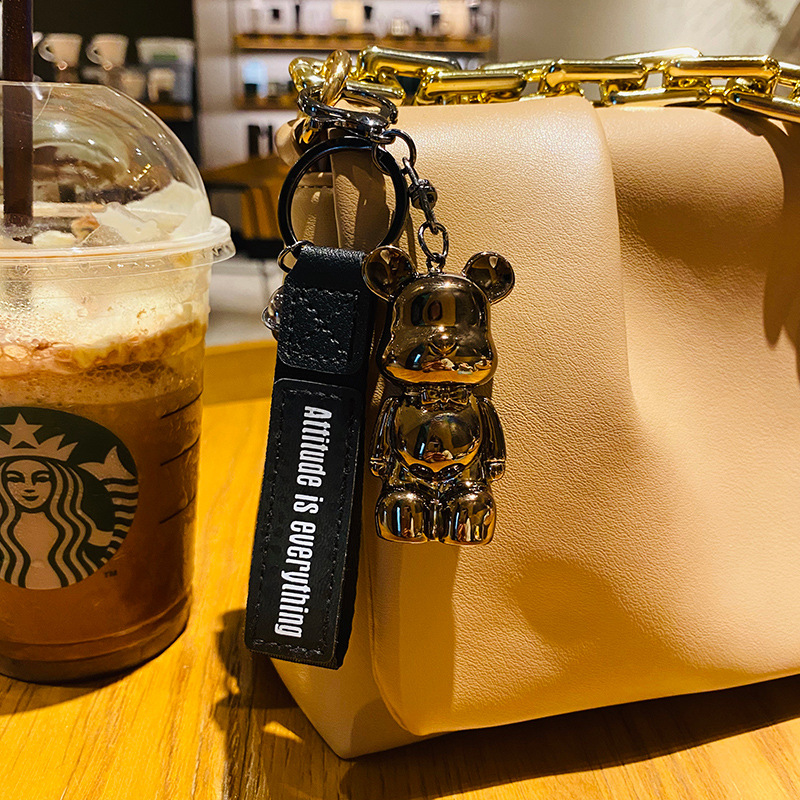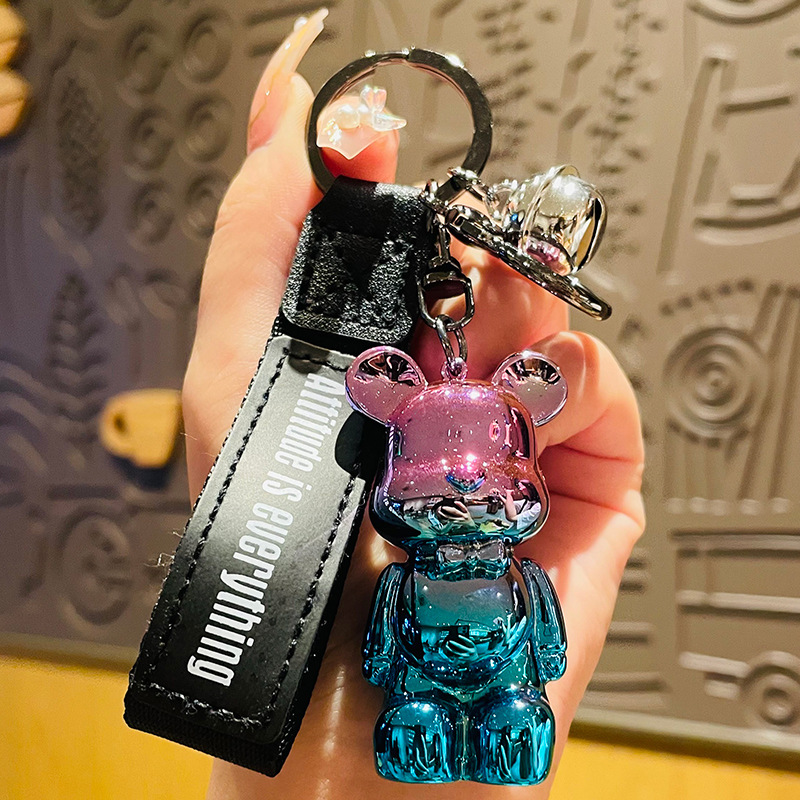 新款炫彩领结熊钥匙扣积木小熊可爱网红汽车挂饰单品书包公仔挂件