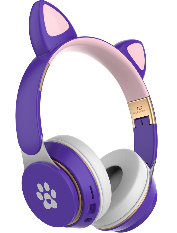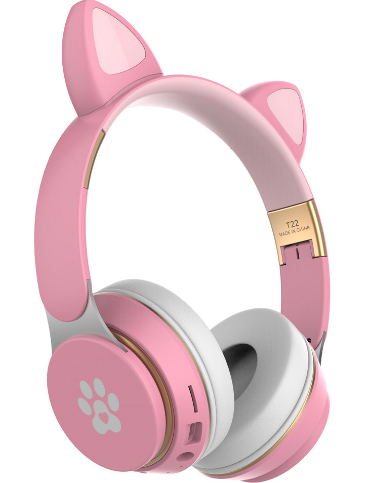 跨境 T22头戴式可爱猫耳朵无线卡通LED发光蓝牙游戏耳机手机耳麦