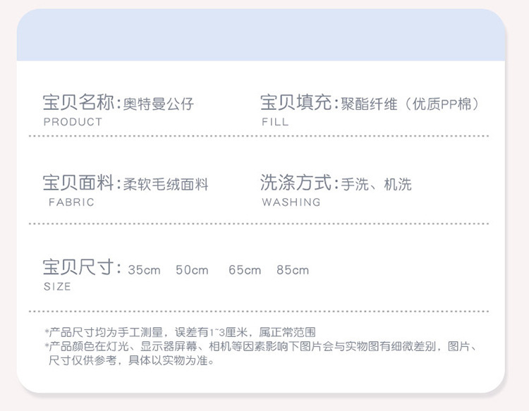 关于宝贝的尺寸等问题,请在购买前确认,因测量手法不同,毛绒玩具有3CM左右的误差属于正常,有问题咨询客服。