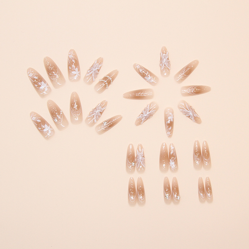 美甲贴片立体蝴蝶假指甲可拆卸指甲花朵缠绕珍珠穿戴甲美甲片30片
