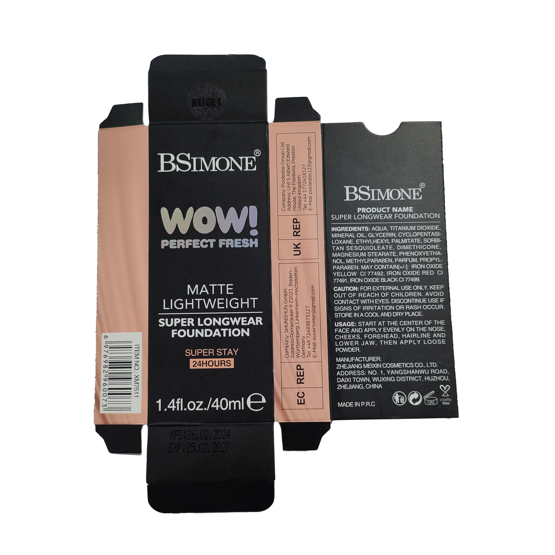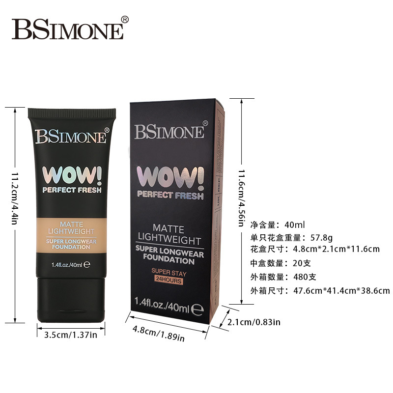跨境专供滋润防水粉底液遮瑕持久不脱妆自然轻薄干皮适用粉底液