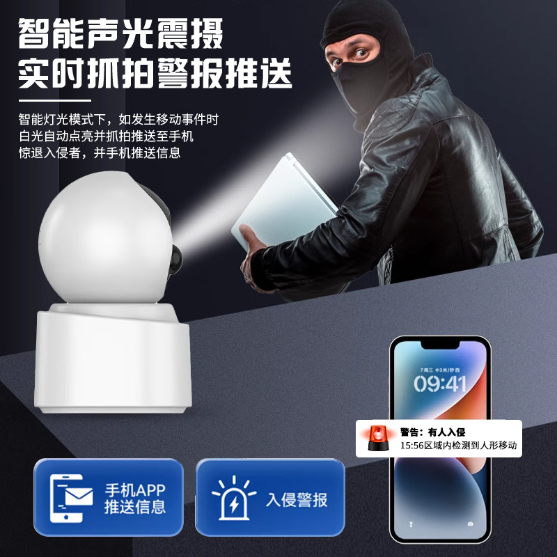 智能无线wifi监控低功耗双画面家用室内高清夜视长待机远程监控器