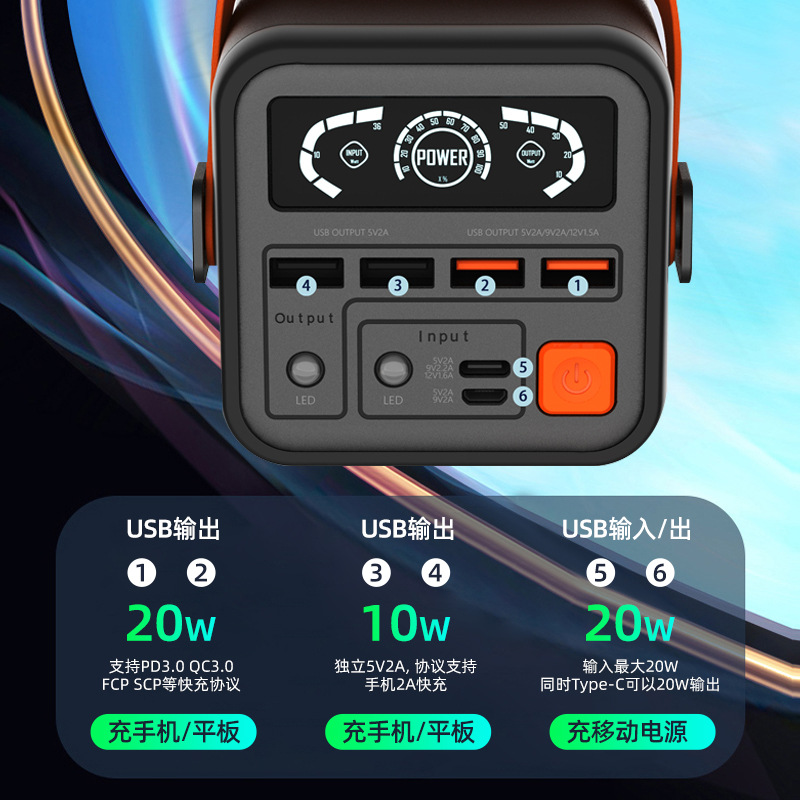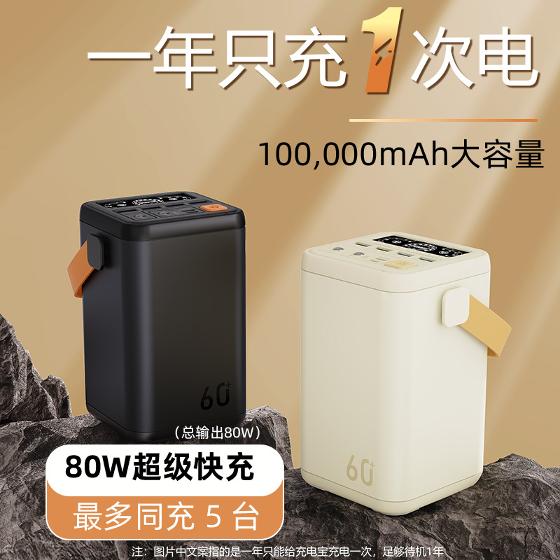 爆款 超级快充大容量移动电源数显充电宝6W毫安户外露营应急储能