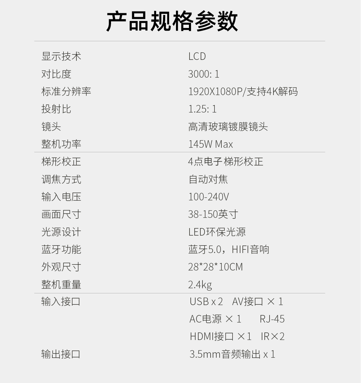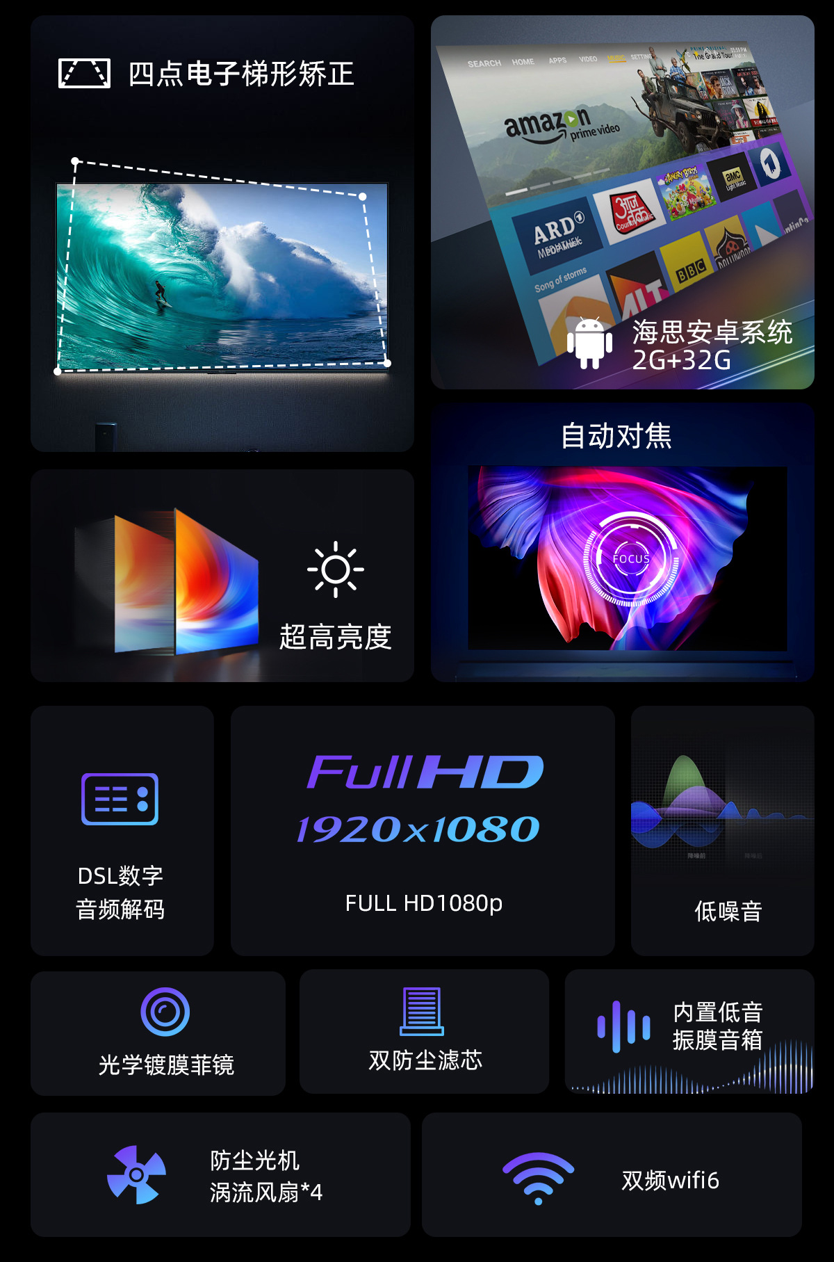 新款T60家用智能高清投影仪安卓版办公会议家庭影院投影机支持4K