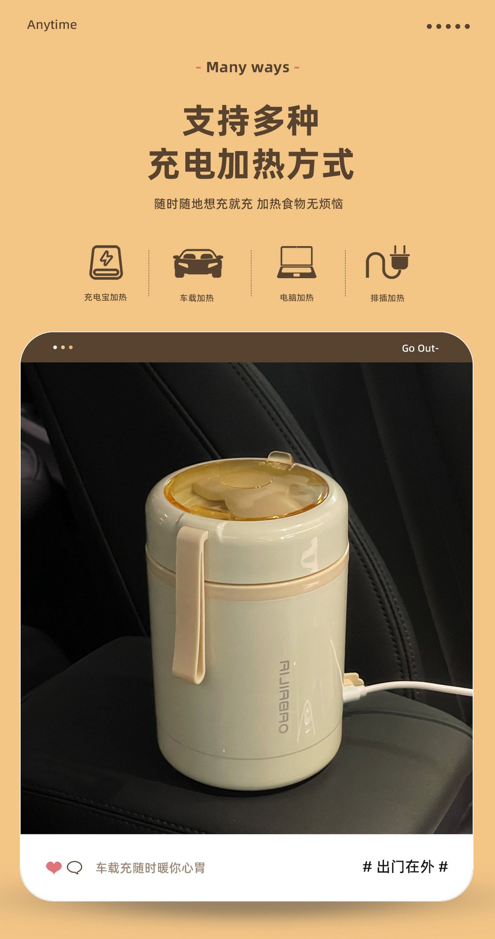 304不锈钢恒温饭盒USB加热大容量饭盒户外上班族便携保温提锅批发
