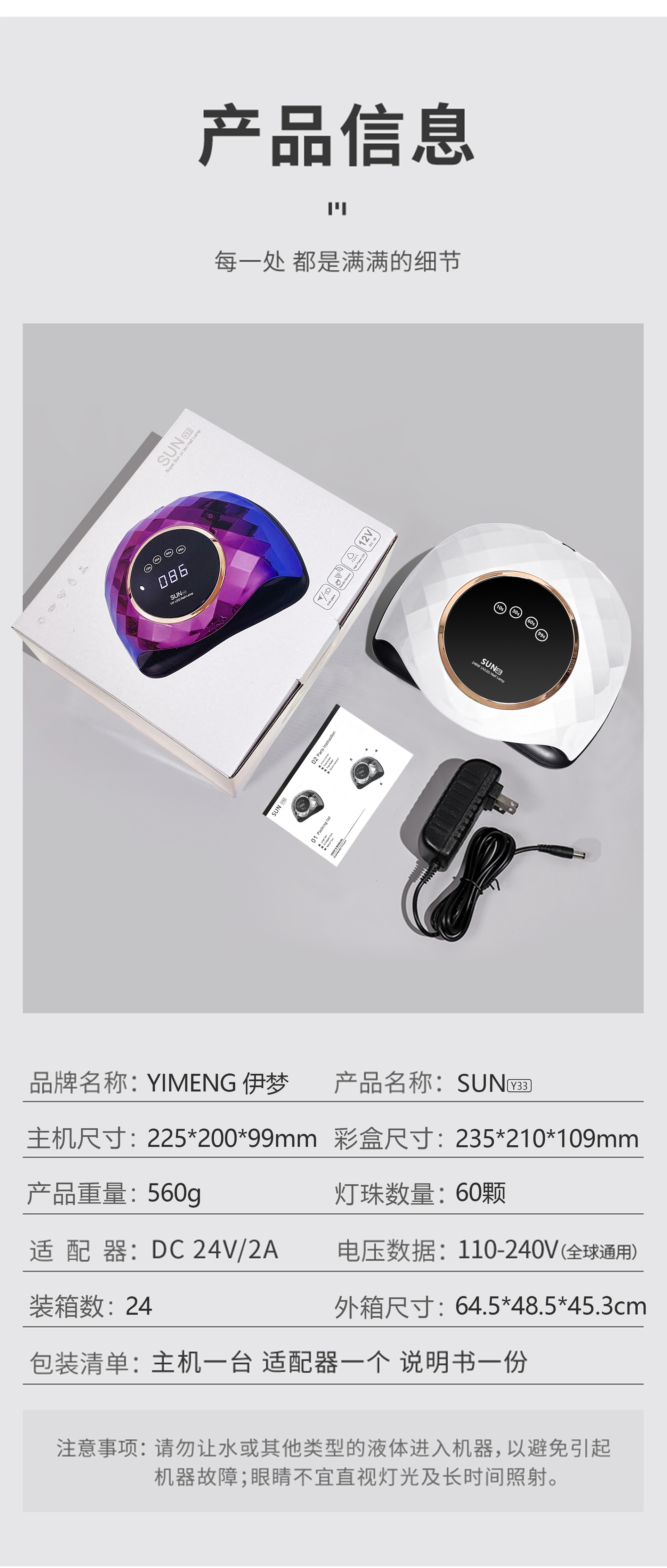 SUNY33美甲灯60led/uv双光源速干烘甲器智能感应甲油胶烤灯光疗机