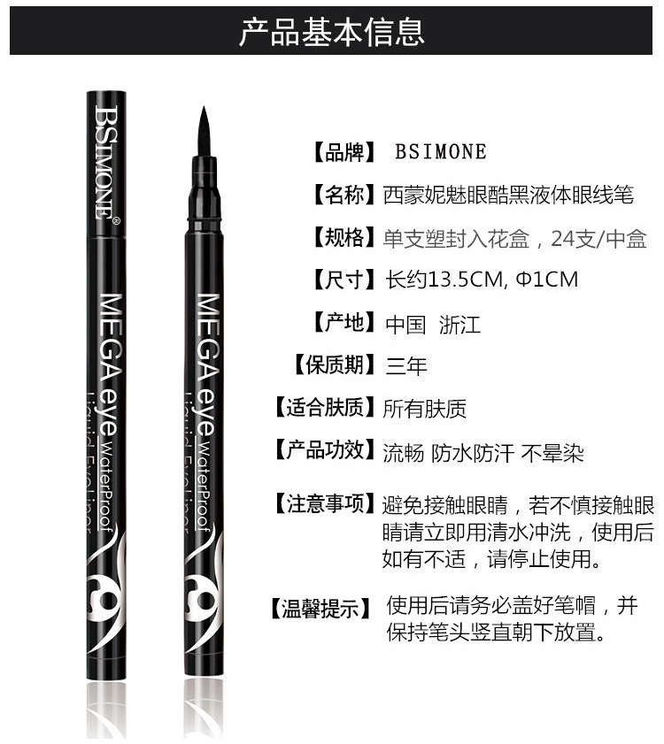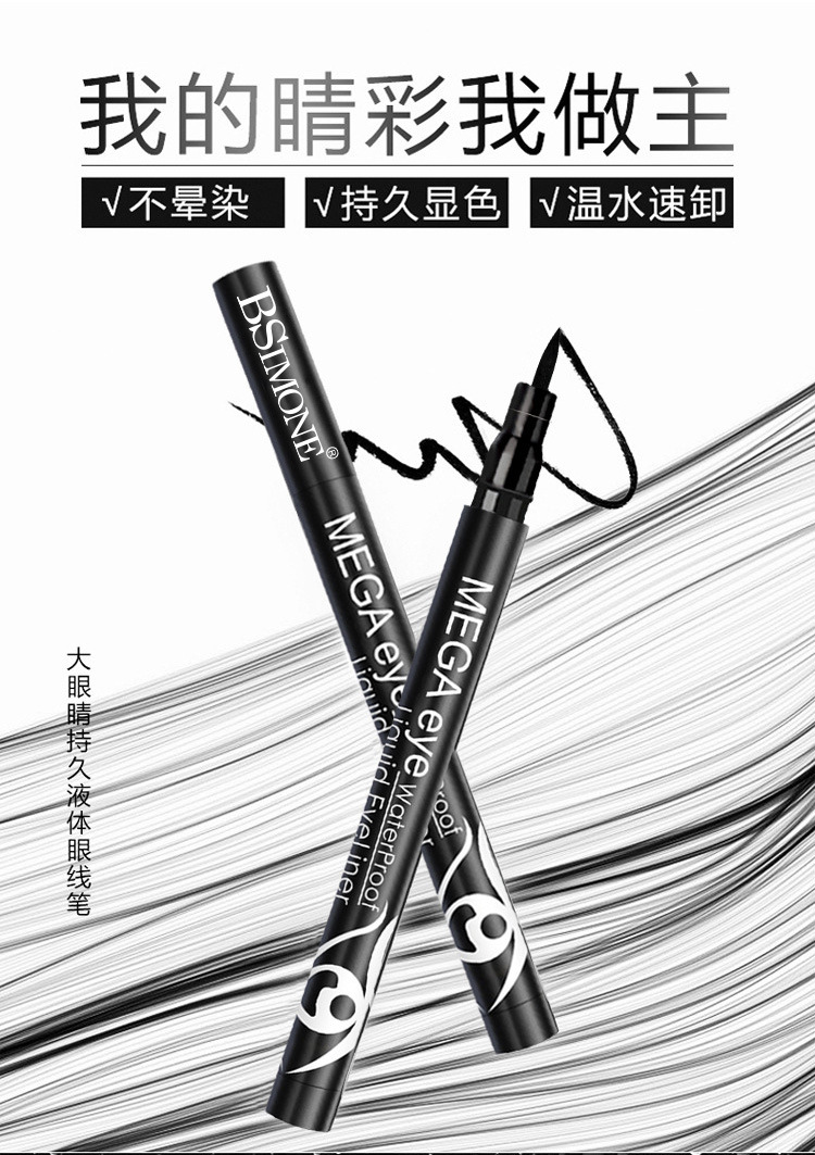 跨境专供 BSIMONE魅眼酷黑眼线笔防水不晕染持久速干眼线液笔