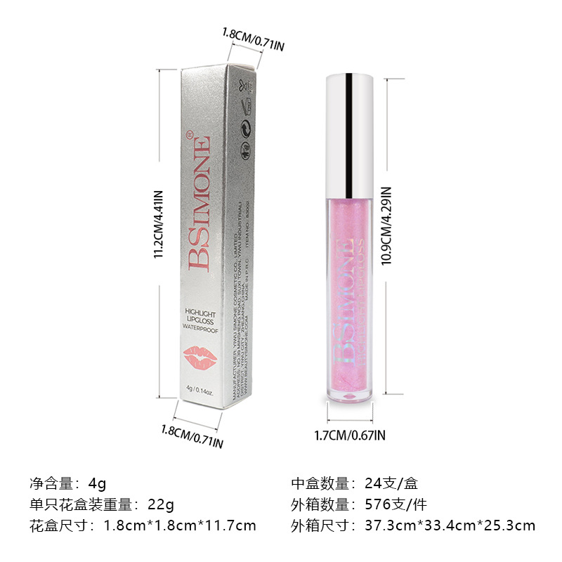 跨境专供BSIMONE珠光滋润保湿唇蜜细闪水光唇釉嘟嘟唇透明唇釉
