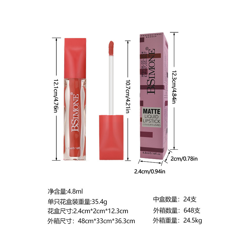 跨境专供哑光丝绒雾面唇釉防水防汗不掉色不沾杯持久滋润显白唇釉