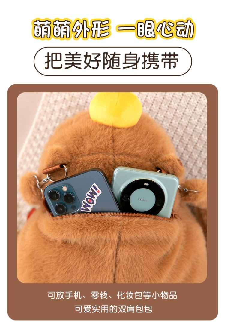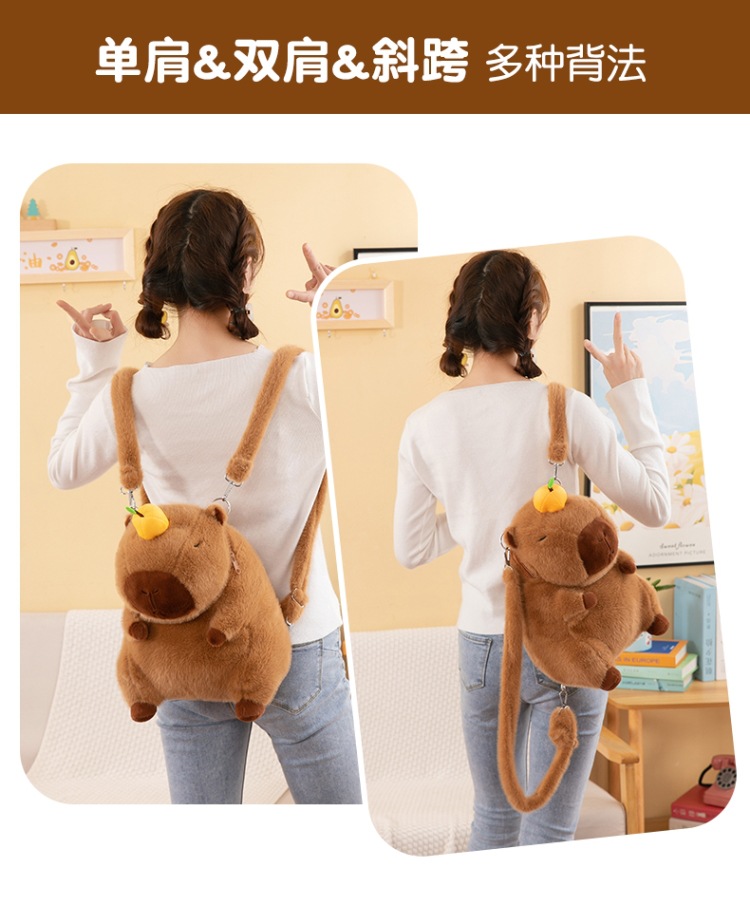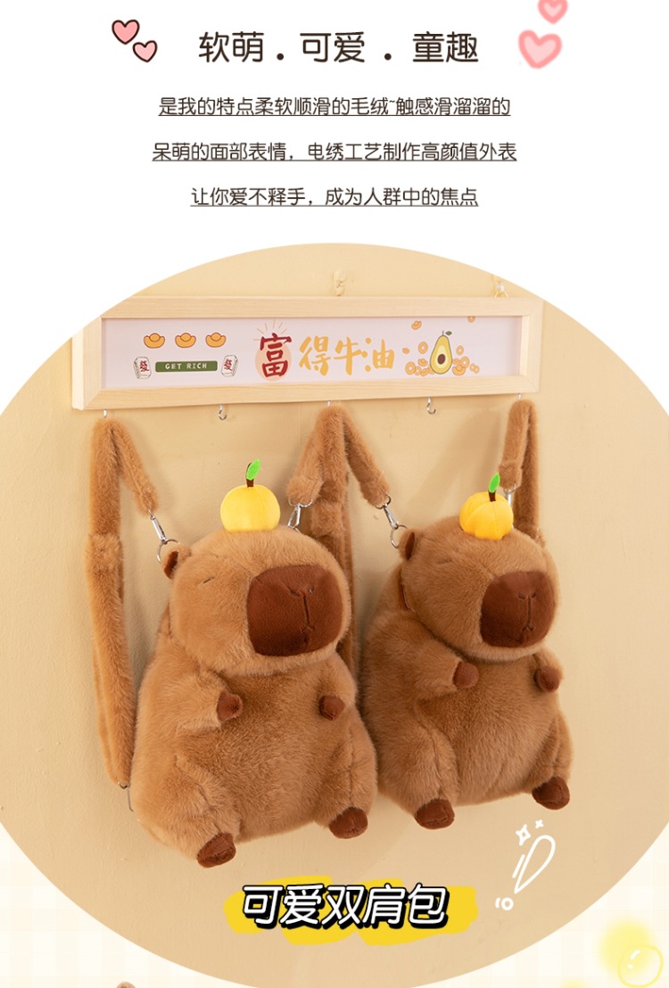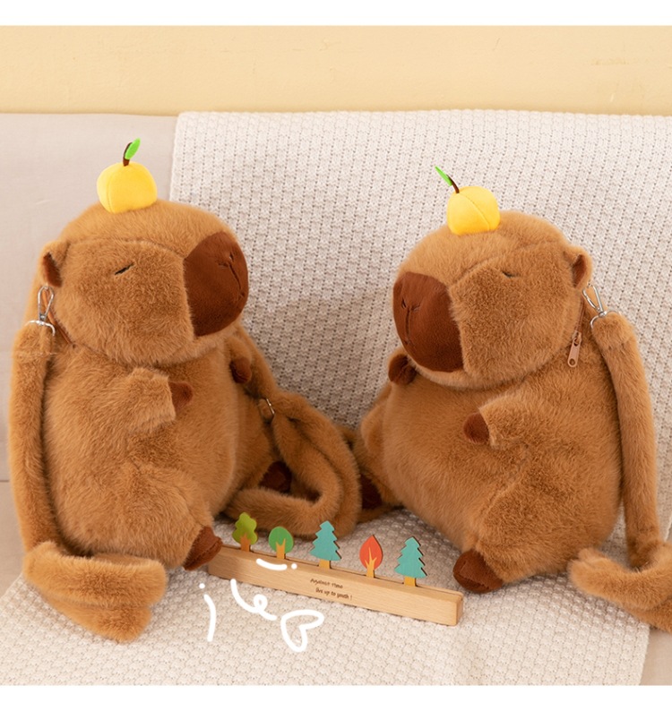 跨境卡皮巴拉毛绒包卡通动物水豚玩偶双肩背包单肩斜挎包手提包