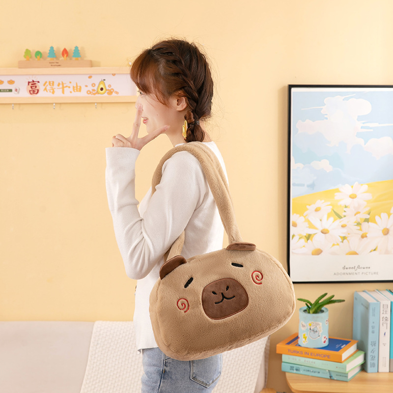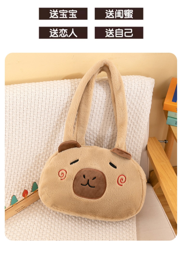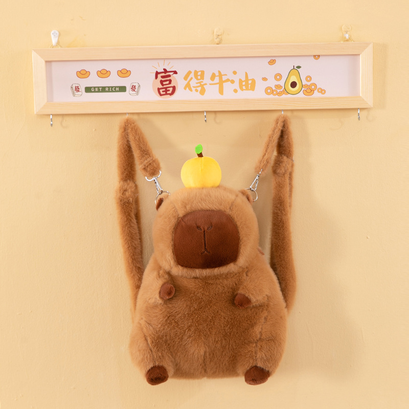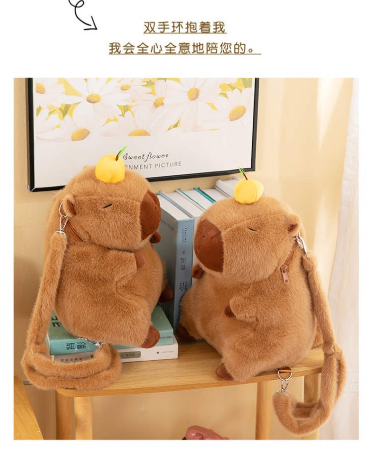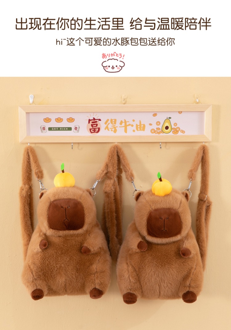 跨境卡皮巴拉毛绒包卡通动物水豚玩偶双肩背包单肩斜挎包手提包