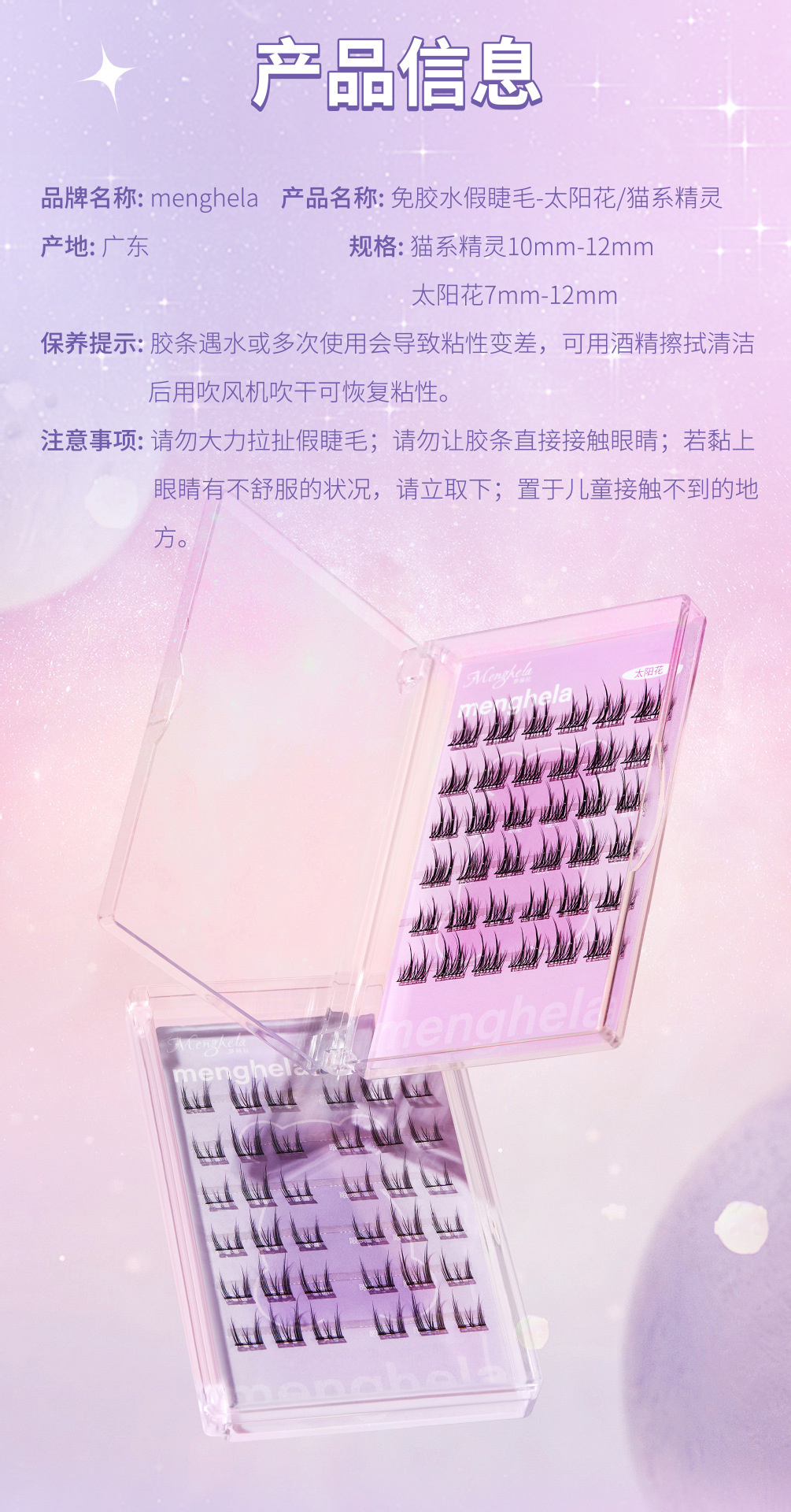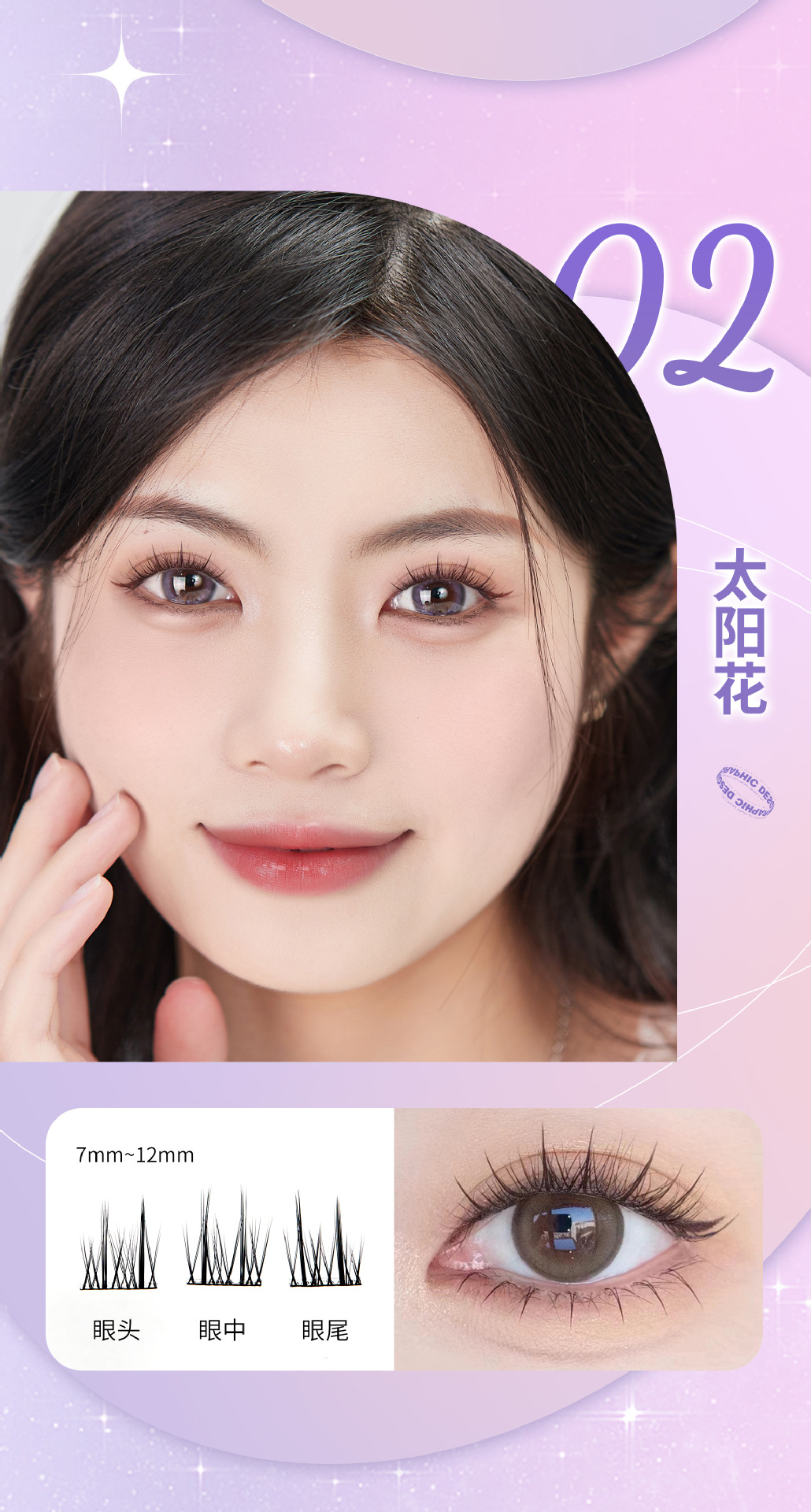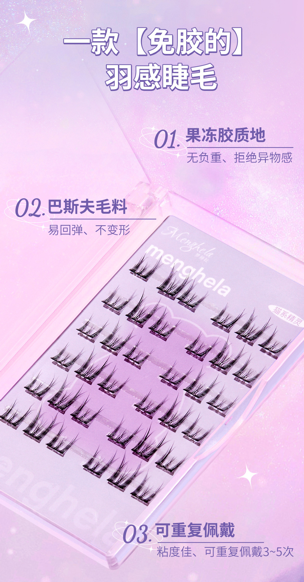 免胶假睫毛纯欲猫系精灵单簇分段式自然仿真细梗浓密卷翘假睫毛女