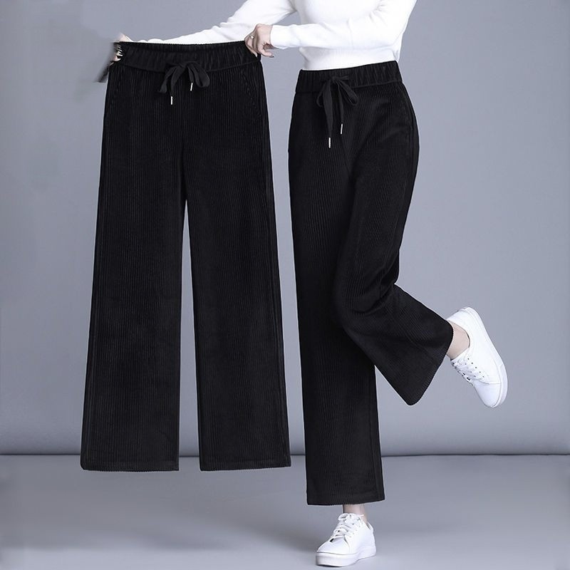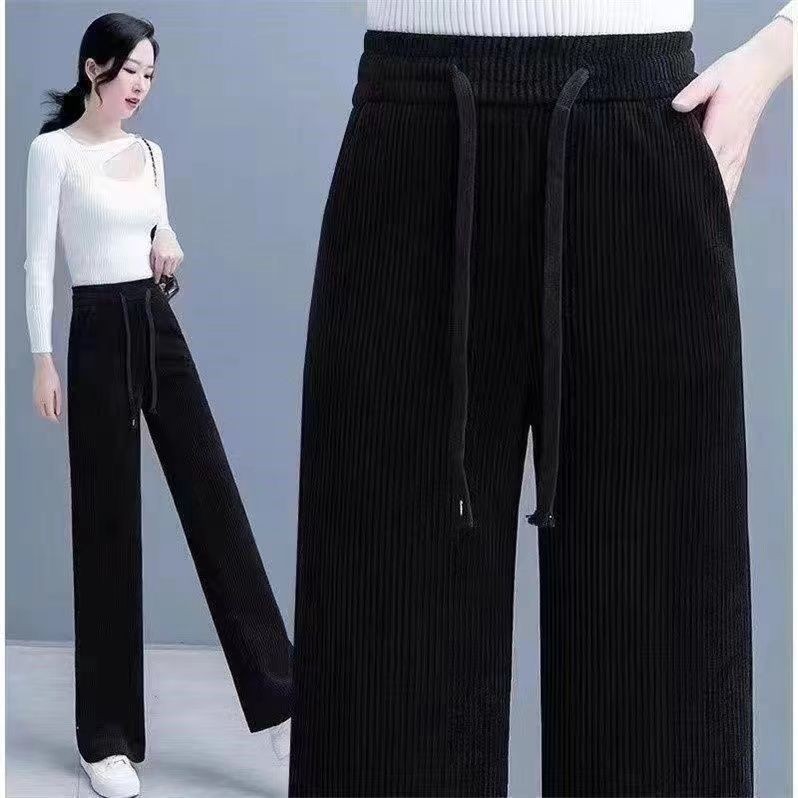 雪尼尔阔腿裤女高腰2024秋冬新款宽松垂感松紧直筒灯芯绒裤子长裤