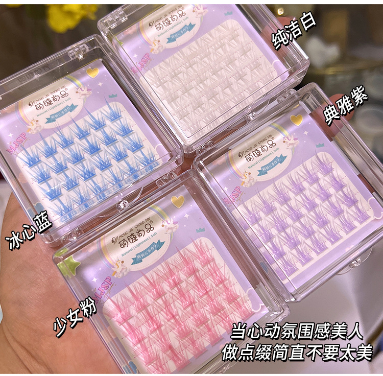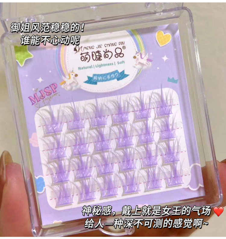 严选萌睫尚品彩色时尚梦幻彩色假睫毛 辣妹风眼睫毛自然单簇分段