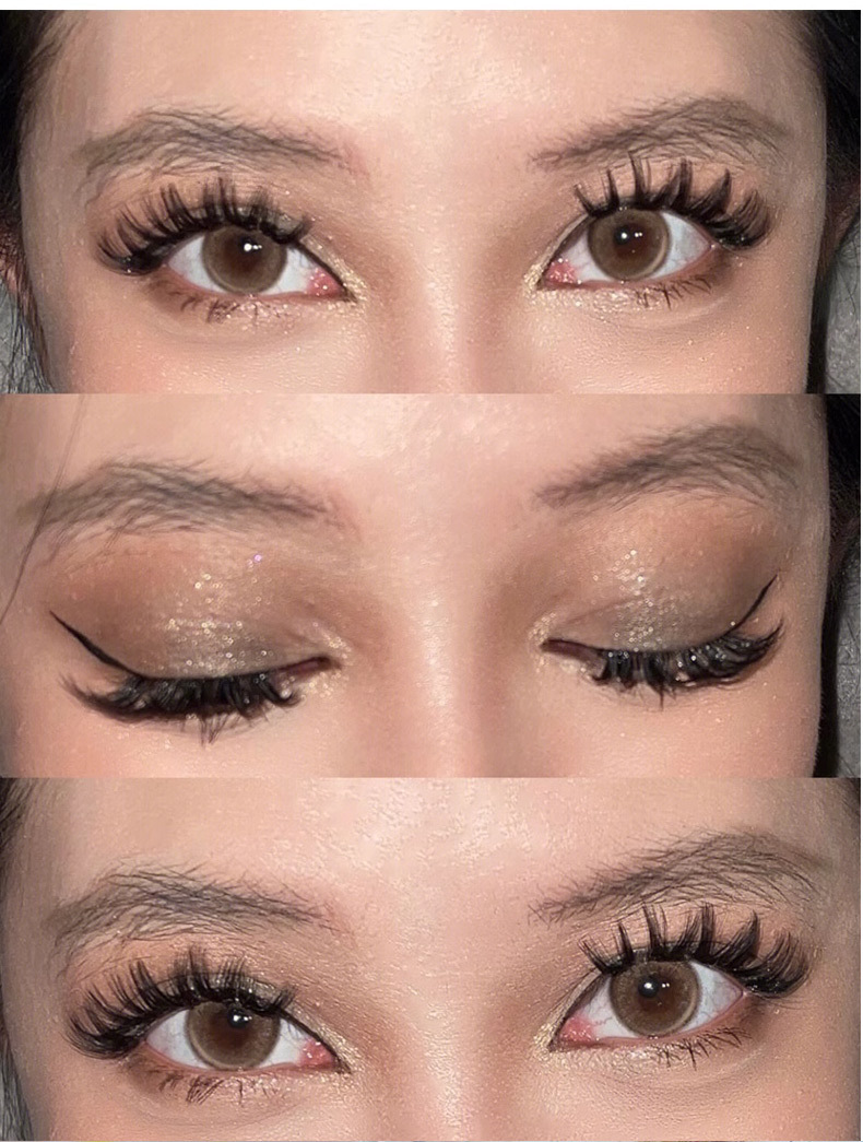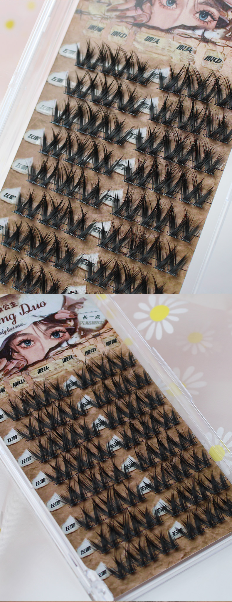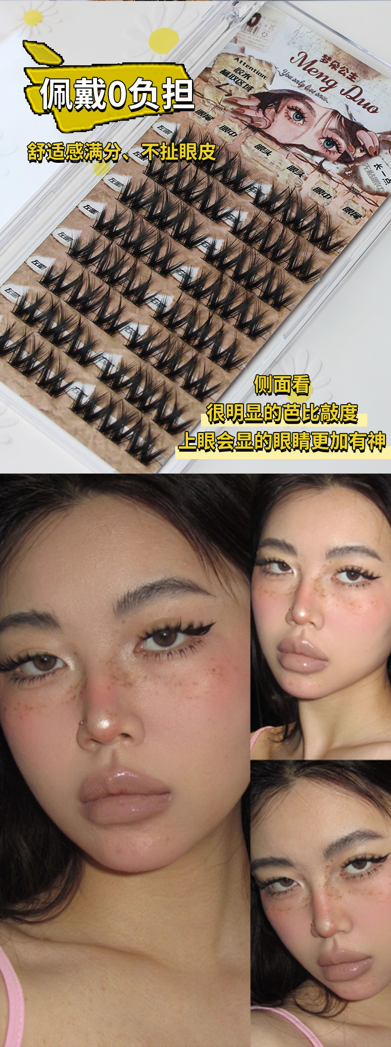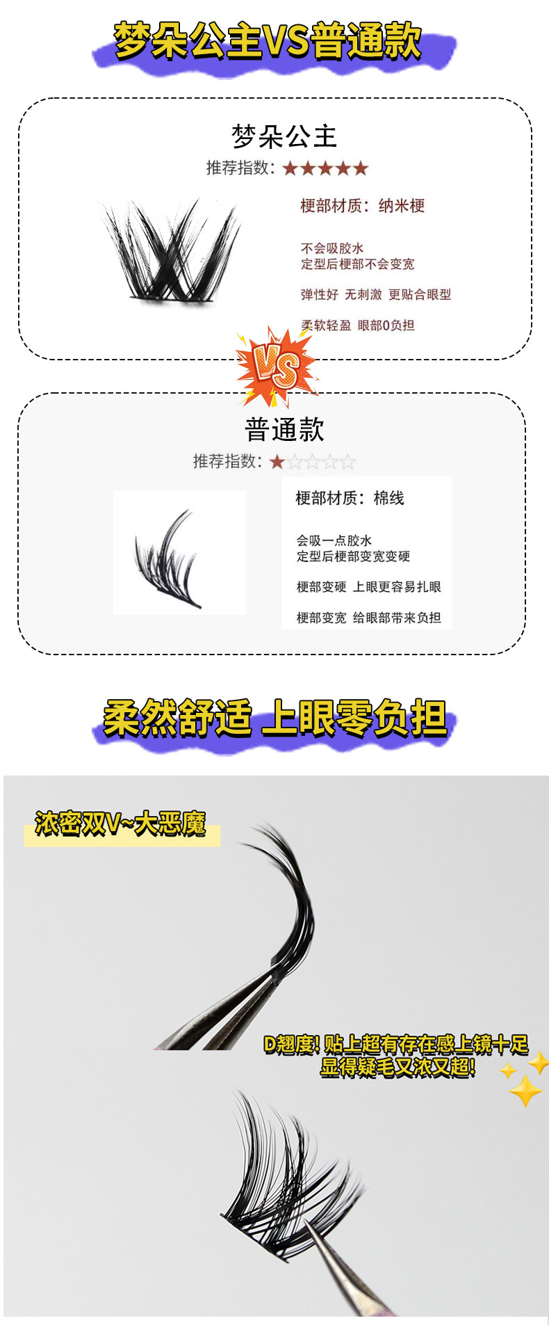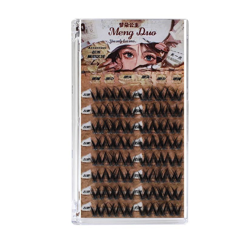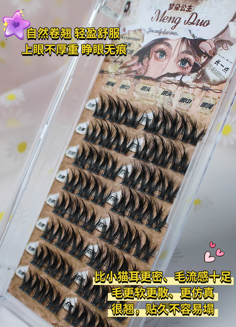 双V浓密假睫毛懒人小花卷假睫毛女单簇超自然毛流感美妆黑色细梗