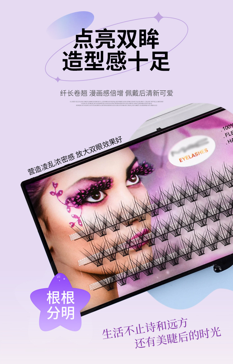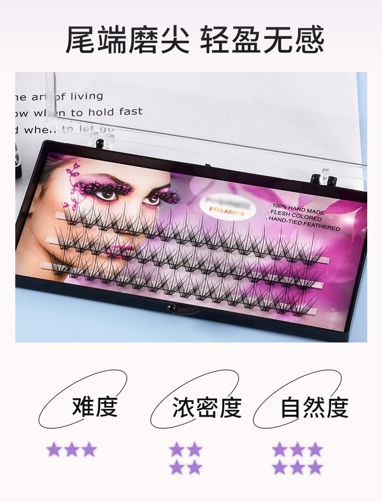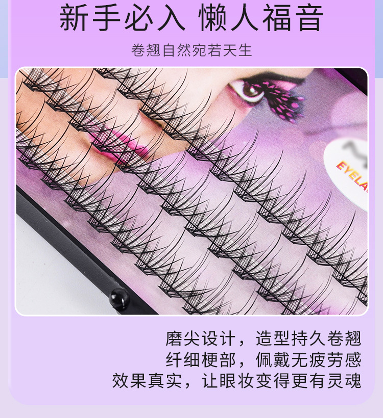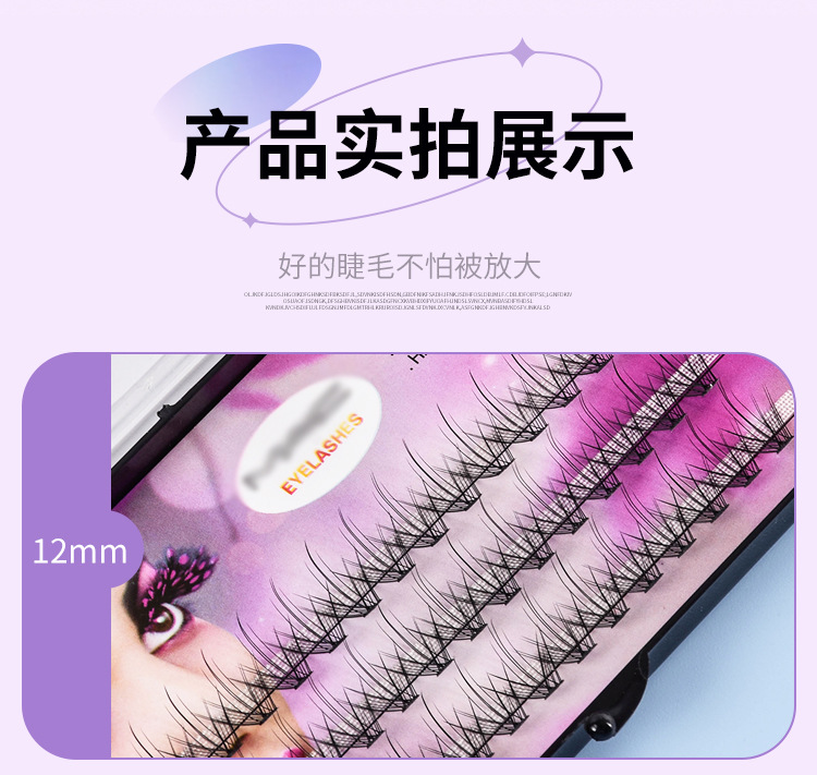 欧美跨境518热熔朵毛 蝶舞12mm单簇自嫁接假睫毛批发 外贸分段式