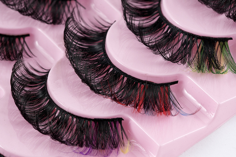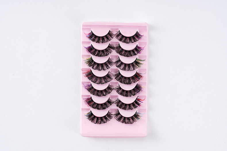 眼尾加彩俄罗斯卷假睫毛7对装 跨境欧美交叉浓密自然凌乱假睫毛