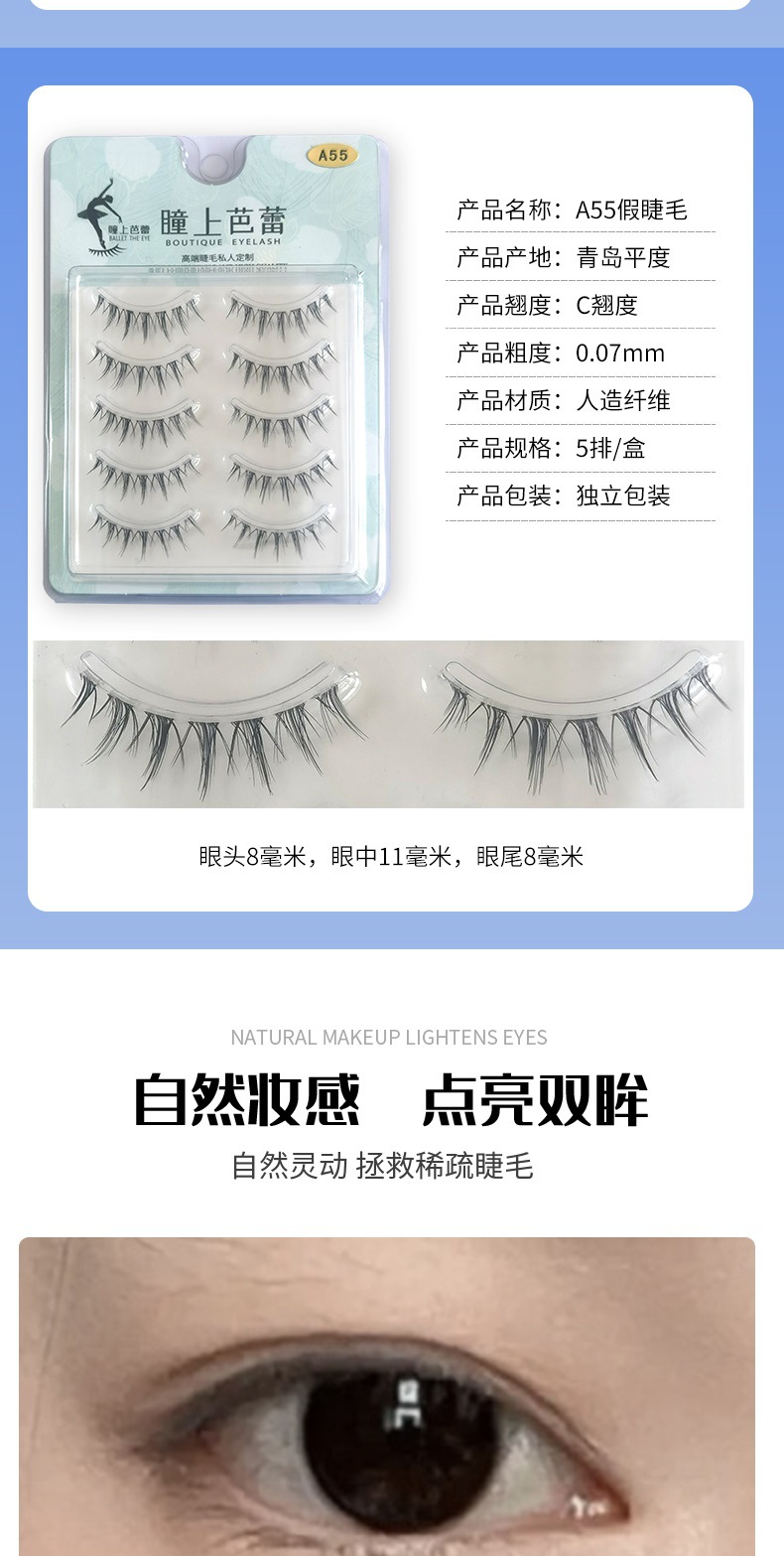 自然仿真透明梗批发磨尖假眼睫毛 A50自然漫画眼裸妆款A35A50A55