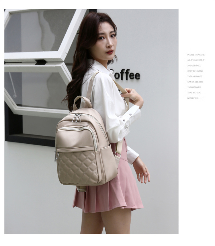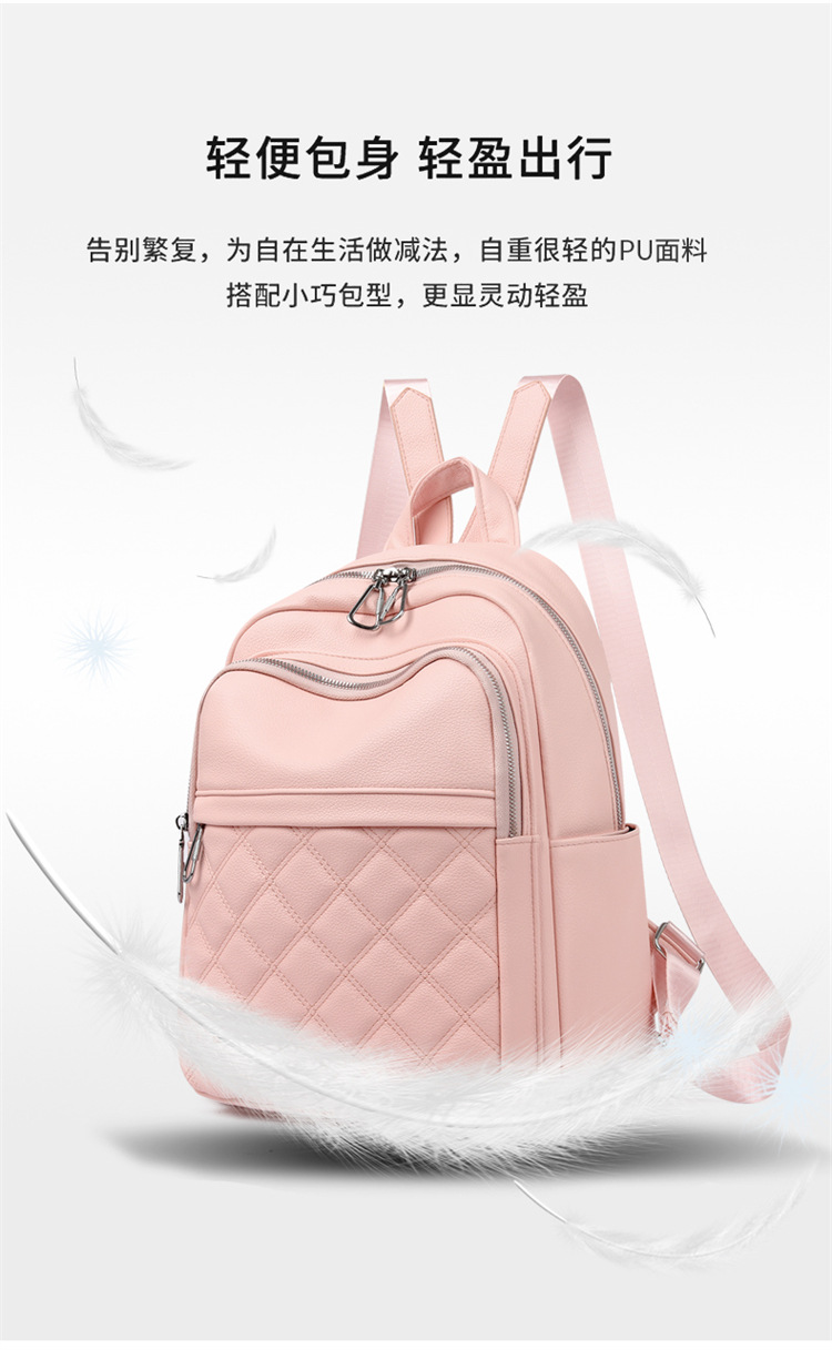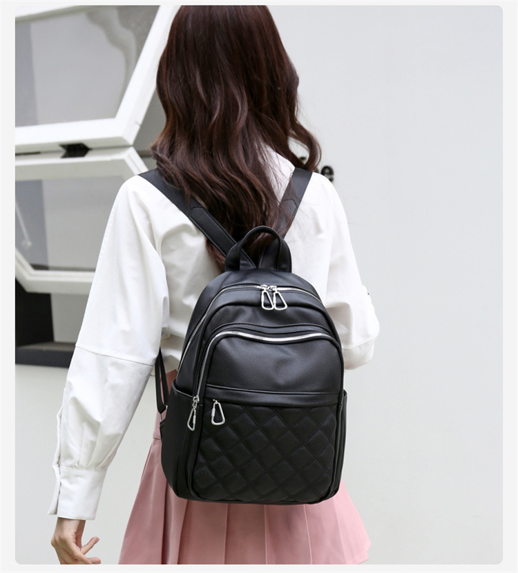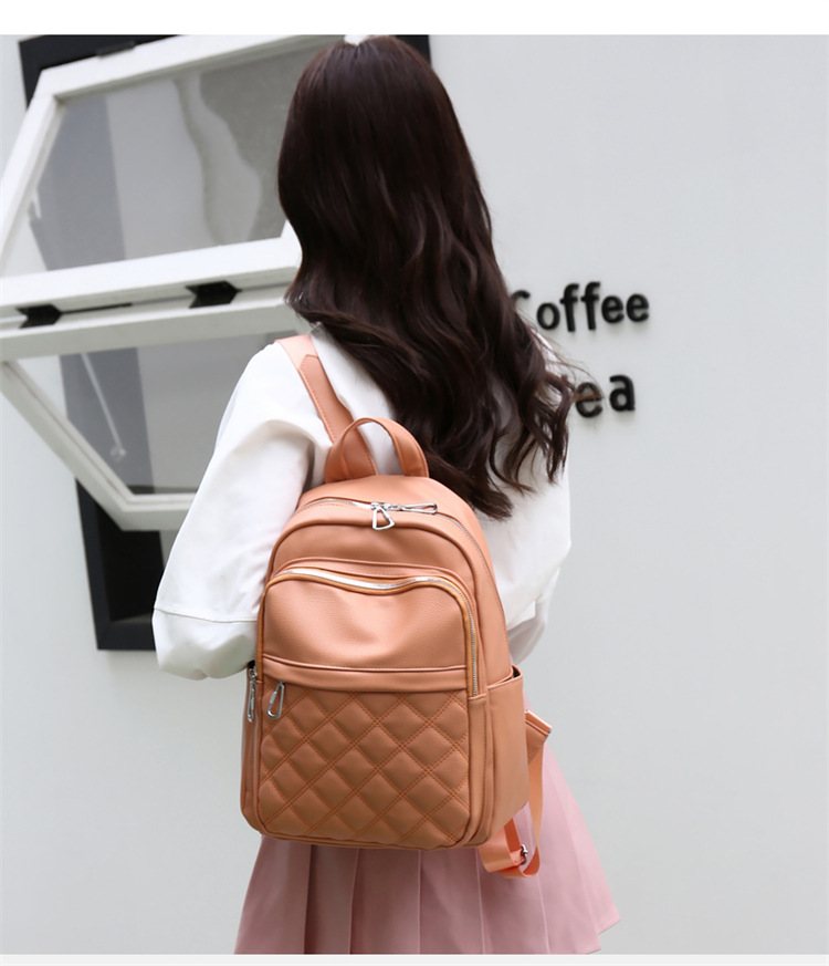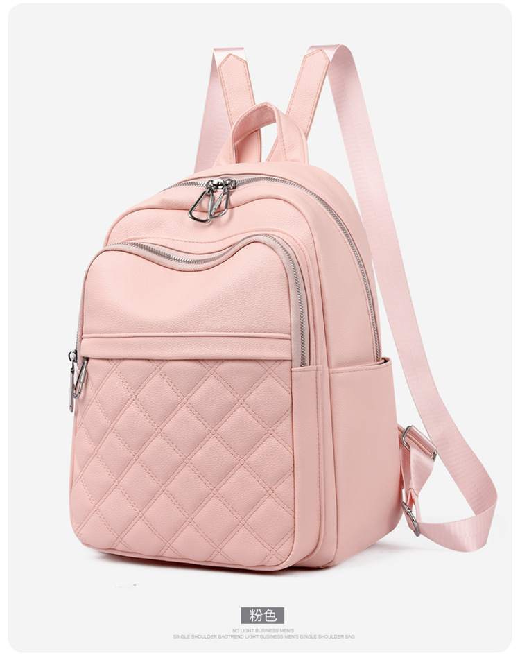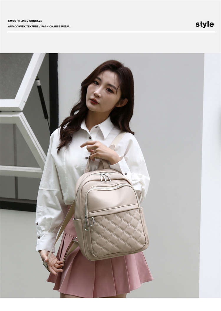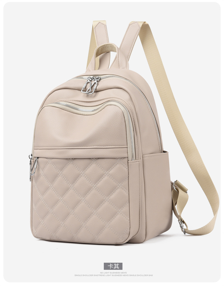 菱格绣线简约纯色背包潮软皮双肩包新款轻便女包