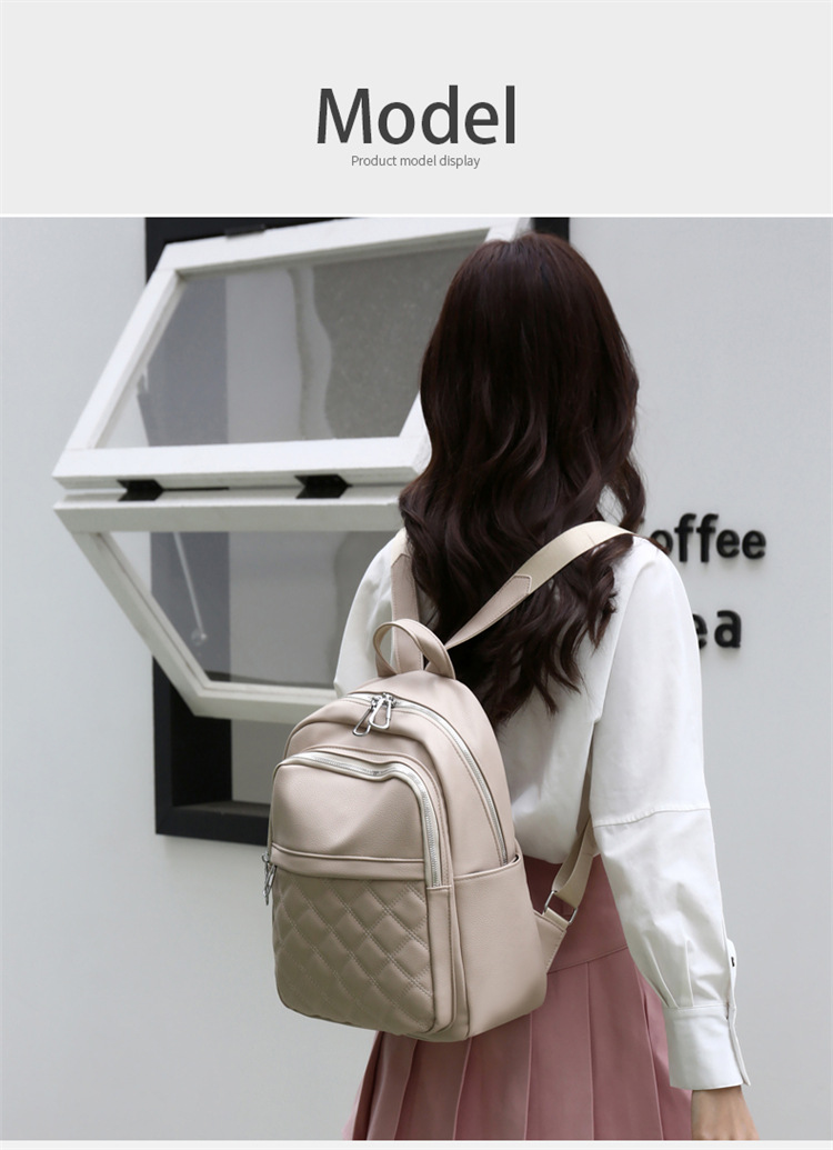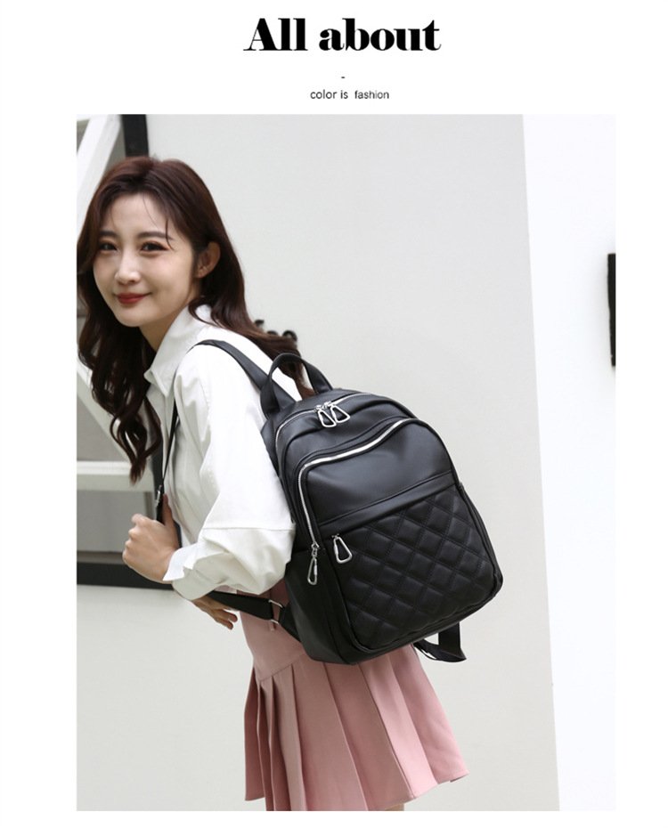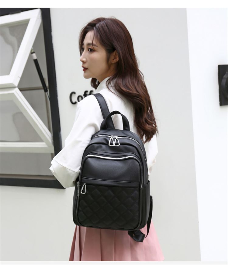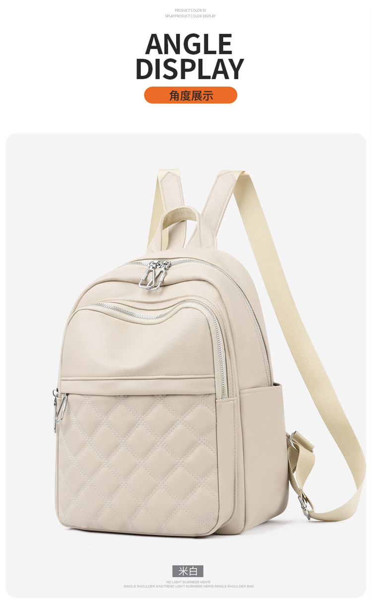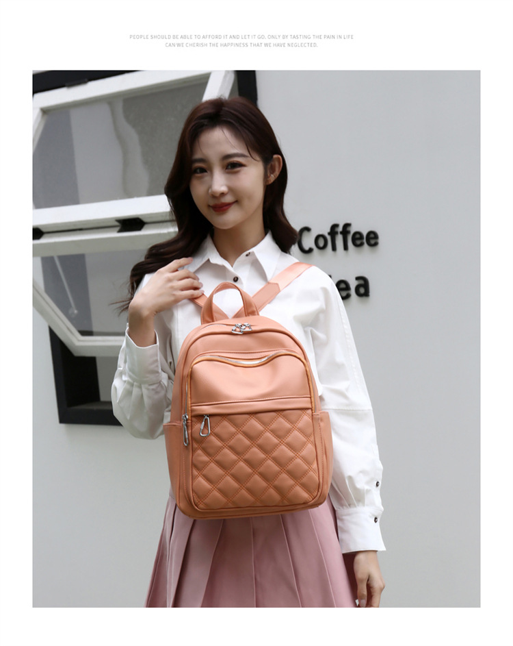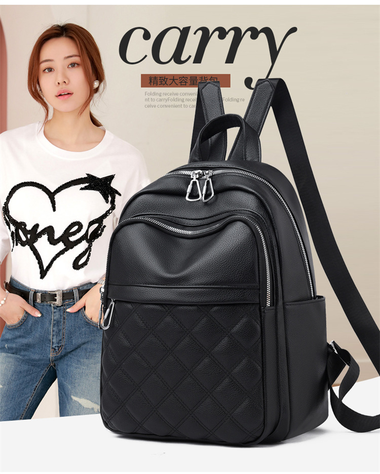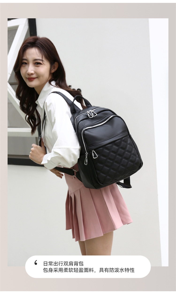 菱格绣线简约纯色背包潮软皮双肩包新款轻便女包