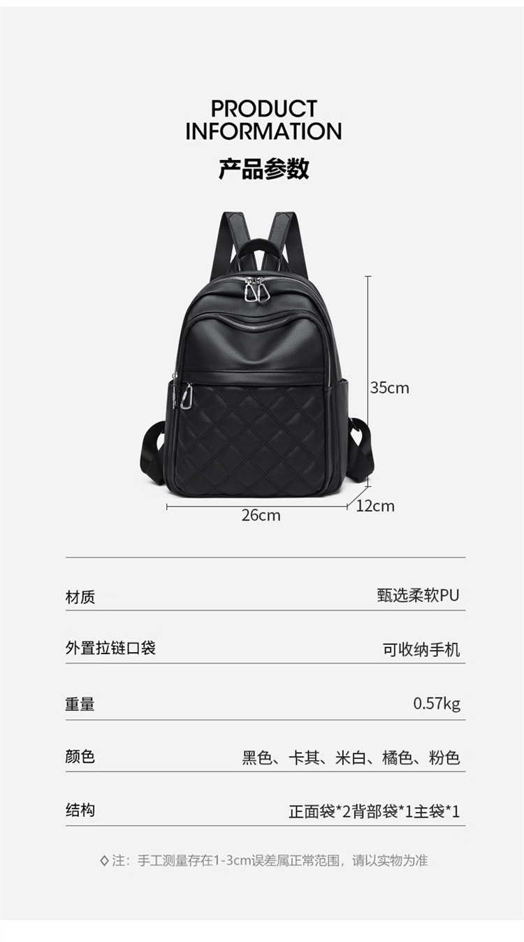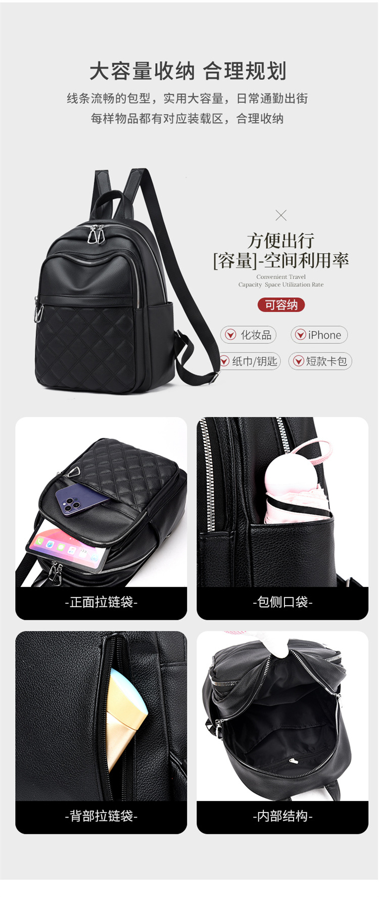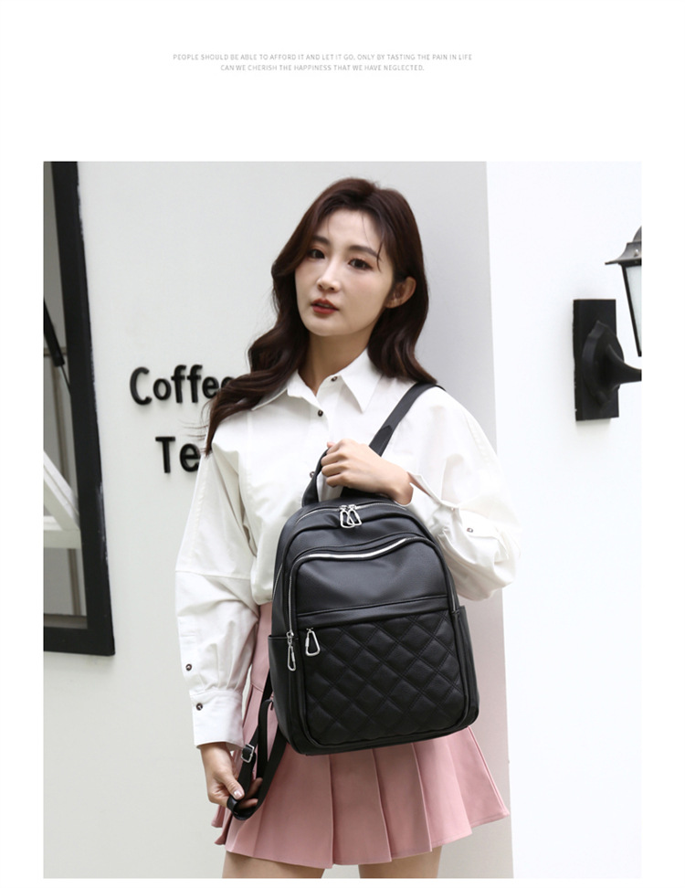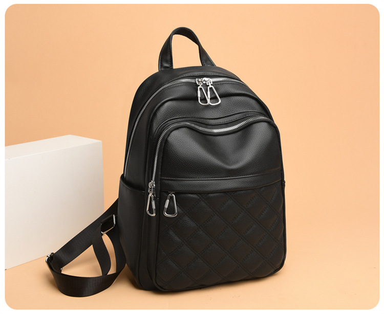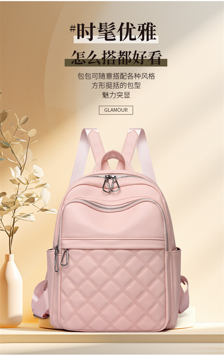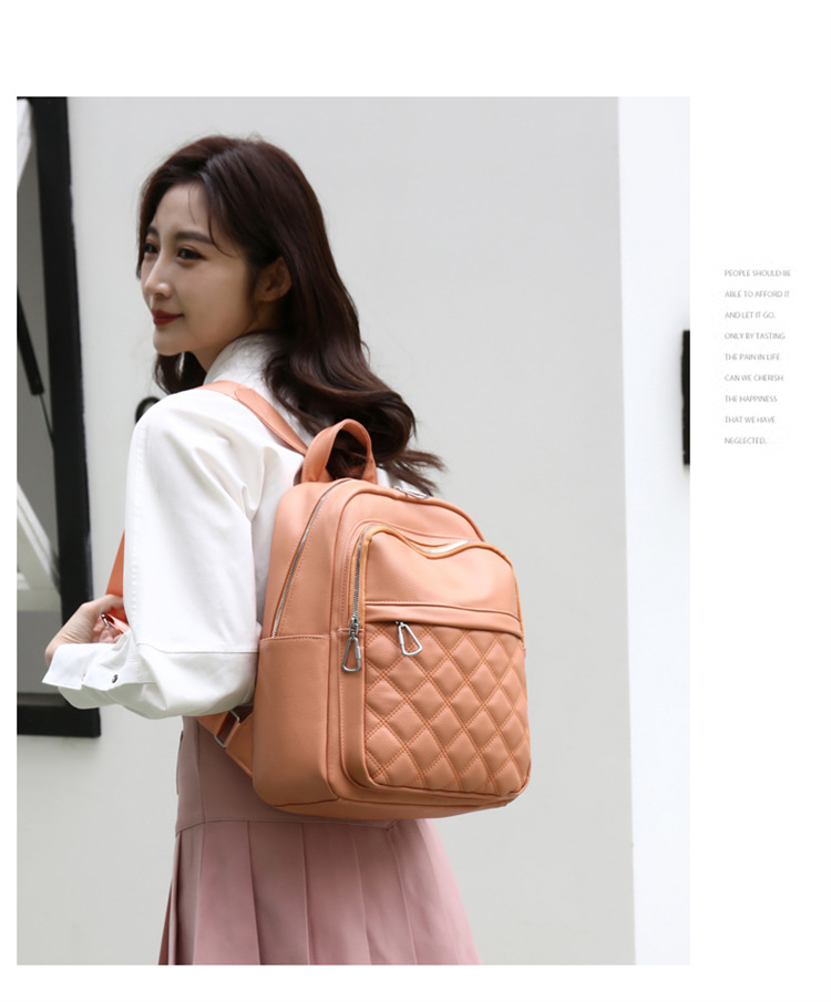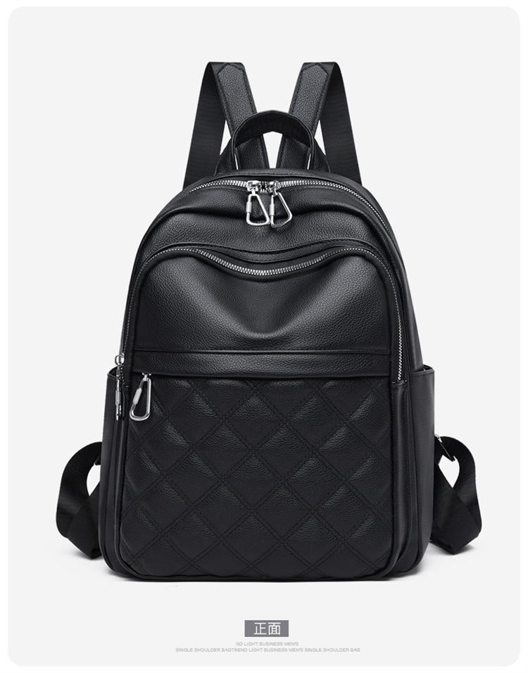 菱格绣线简约纯色背包潮软皮双肩包新款轻便女包