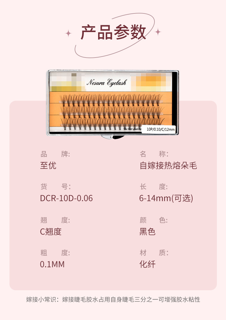 至优10根热熔朵毛0.10粗度嫁接假睫毛分段式自嫁接单簇种植睫毛
