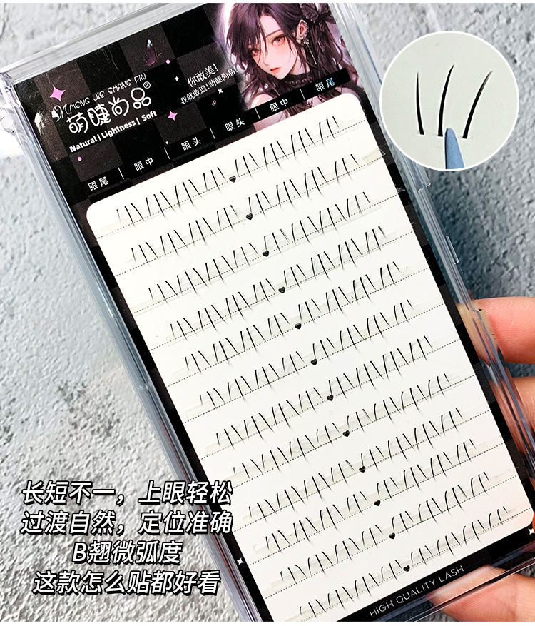 萌爪爪下睫毛单簇透明梗毛流感B翘弧度新手分段懒人上镜款假睫毛