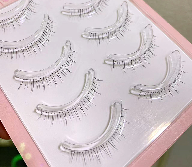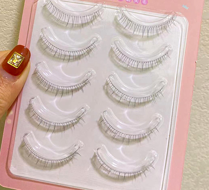 猫耳假睫毛自然V型猫耳细梗素颜妆自然仿真漫画款一片式整条下睫
