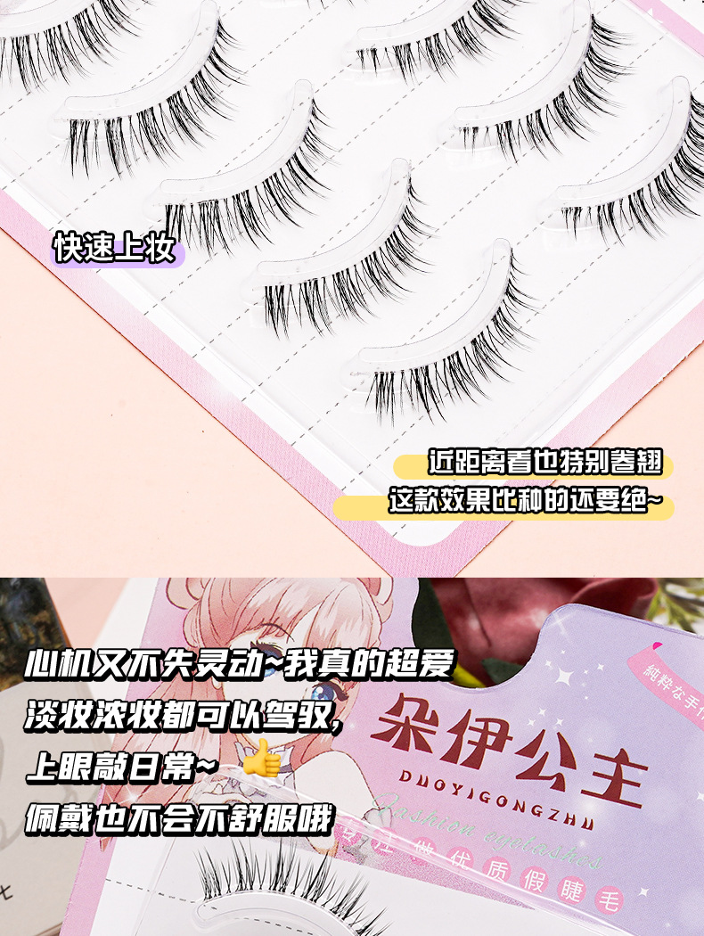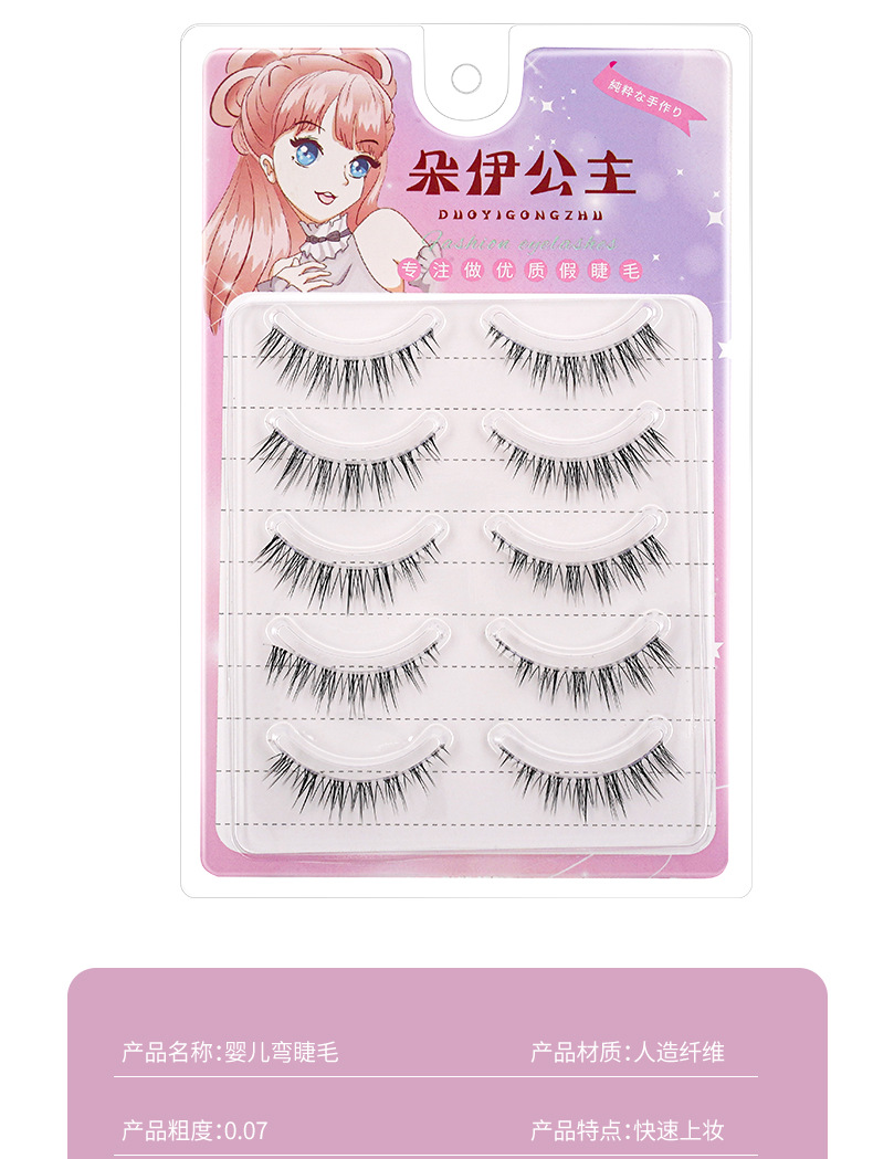 朵伊公主 婴儿弯假睫毛五对透明梗单线细梗漫画妈生感自然整条假