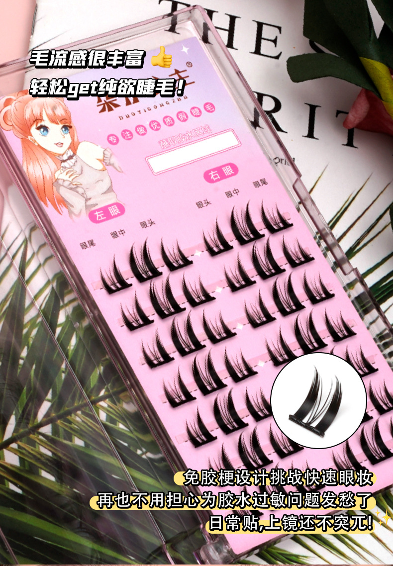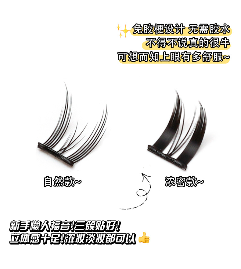 免胶免卸自粘假睫毛懒人三部曲猫精灵自然浓密分段式睫毛小恶魔