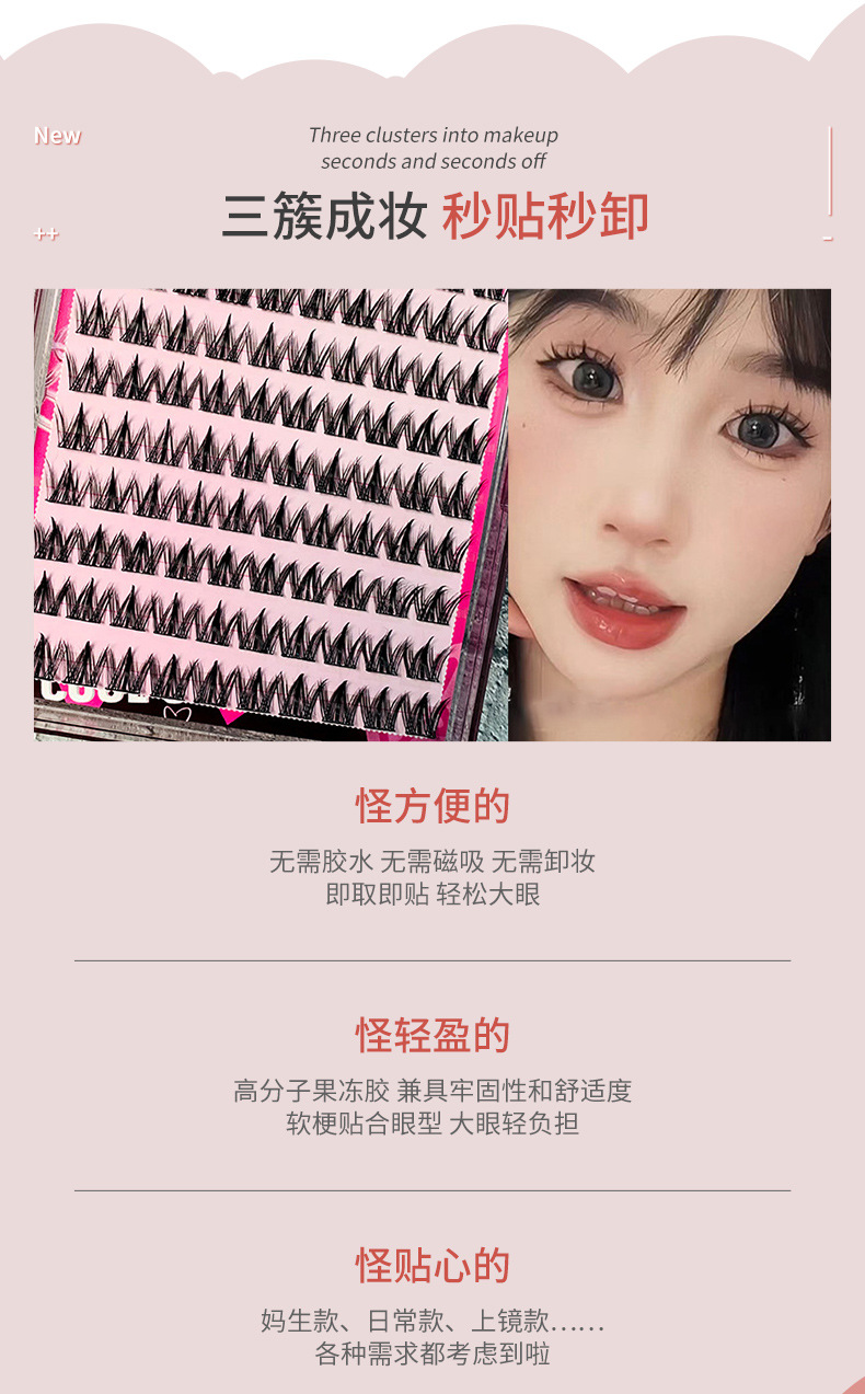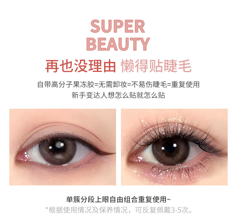 大容量自粘免胶免卸元气分段式假睫毛自然单簇新手显睫分段眼睫毛