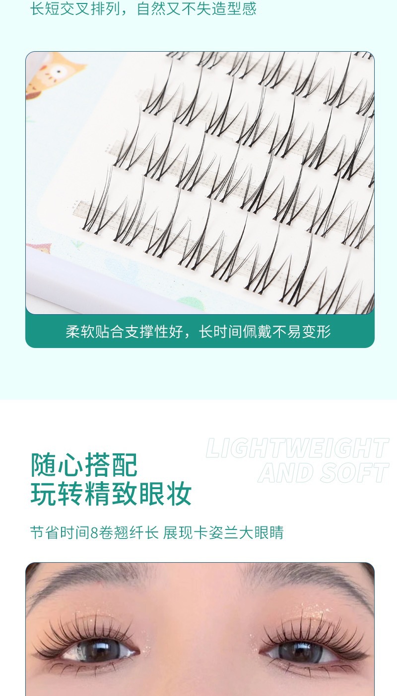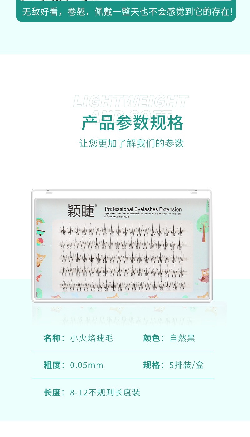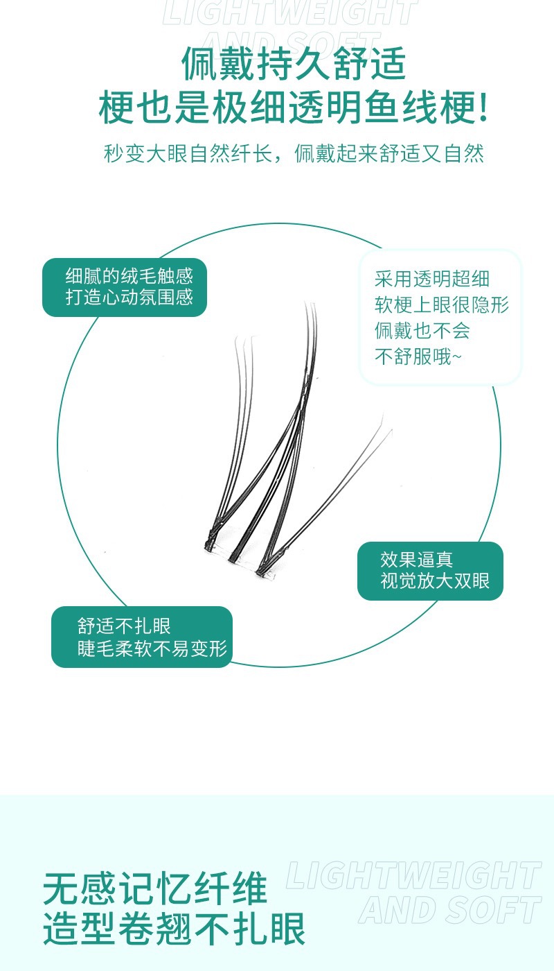五排透明梗小火苗睫毛单簇假眼睫毛自然逼真仿真学生素颜自己嫁接