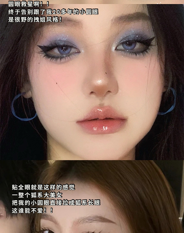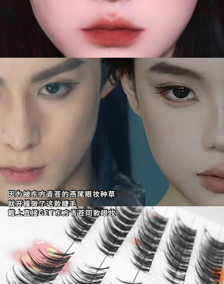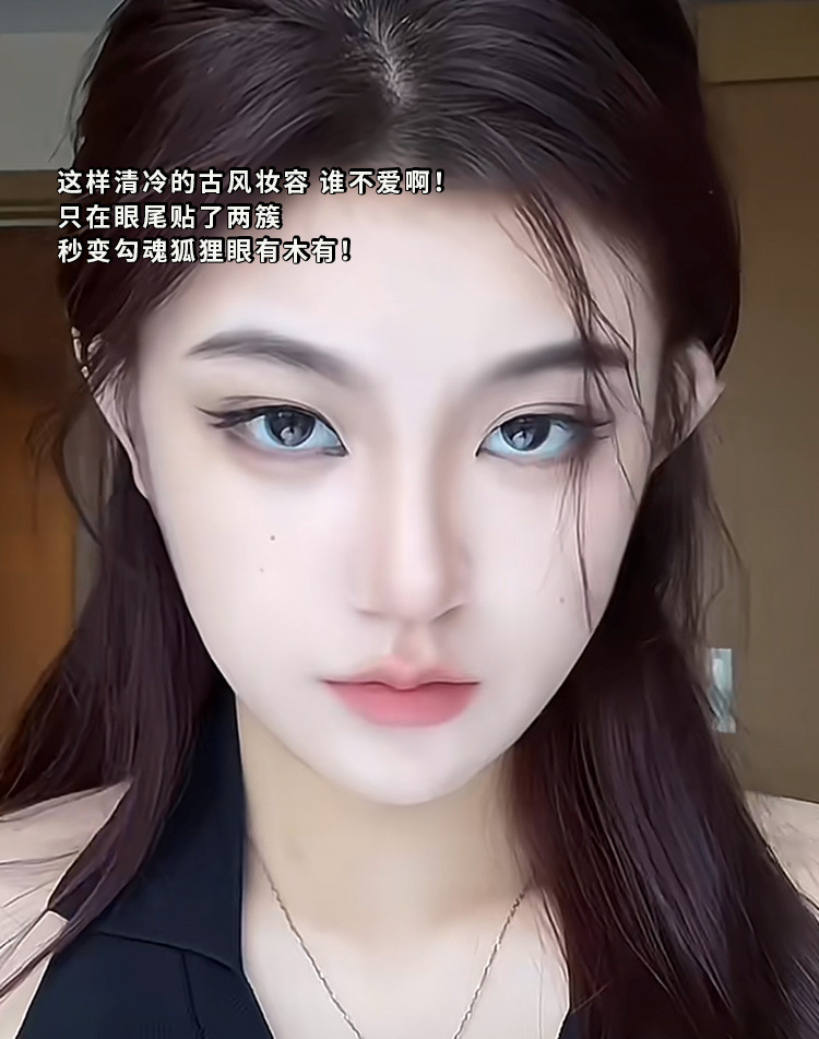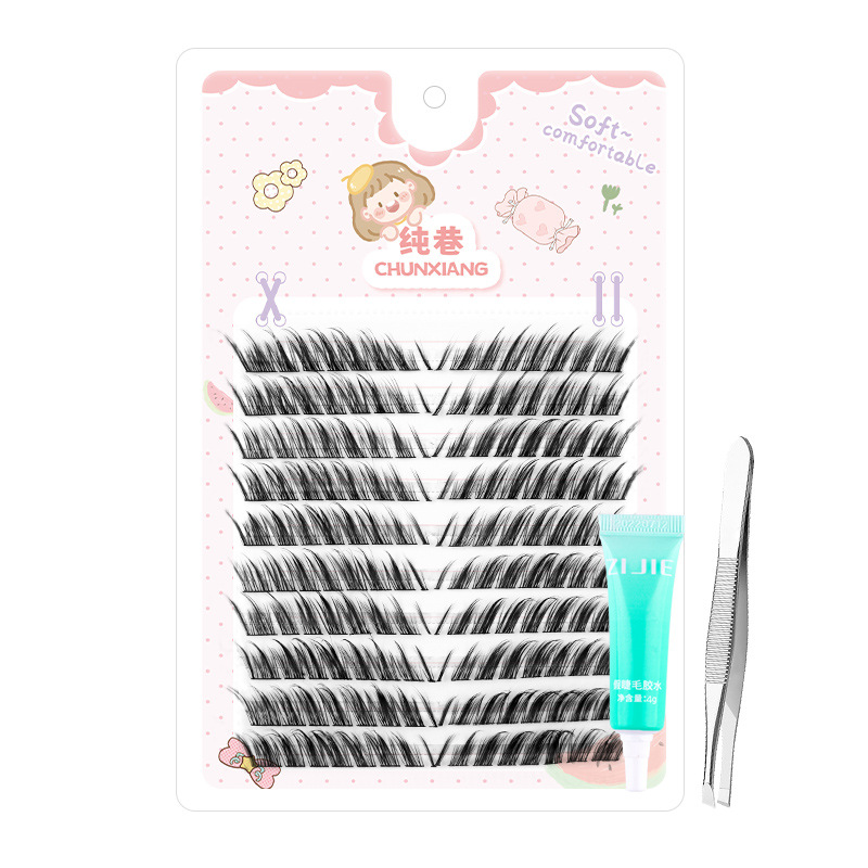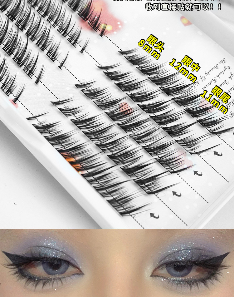 纯巷东方青苍古风狐系斜飞假睫毛自然倾斜眼尾拉长款萌乱分段睫毛