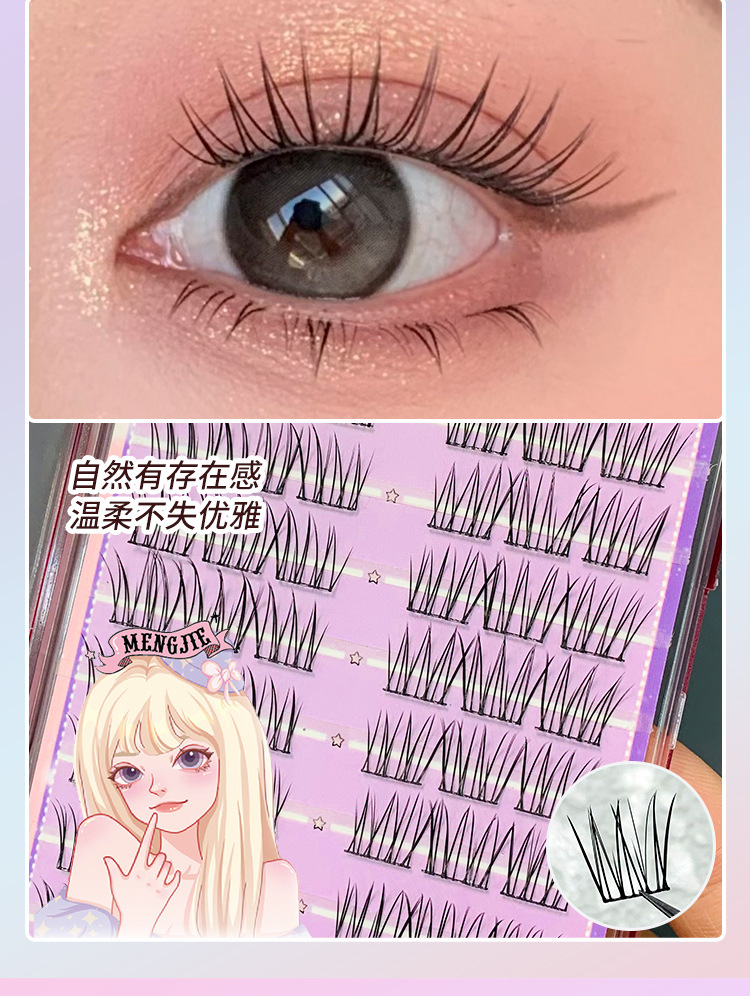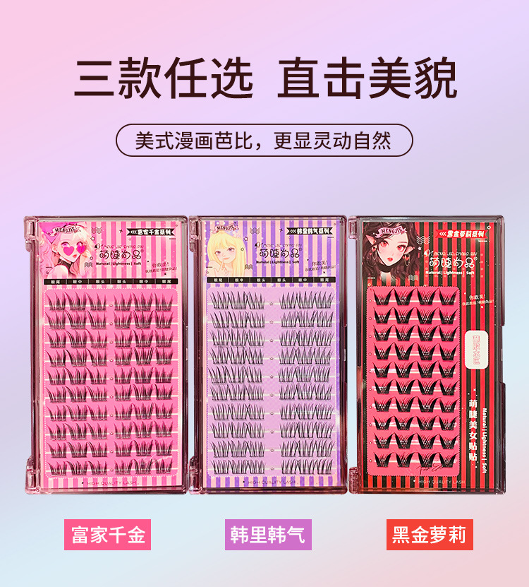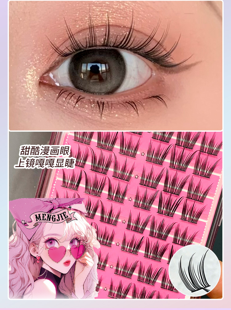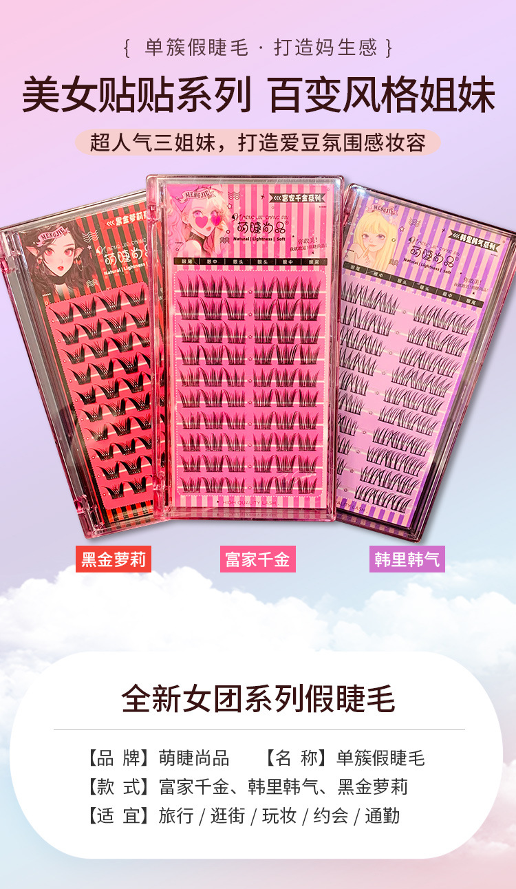 萌睫尚品全新韩系女团假睫毛自然仿真懒人单簇分段式富家千金睫毛