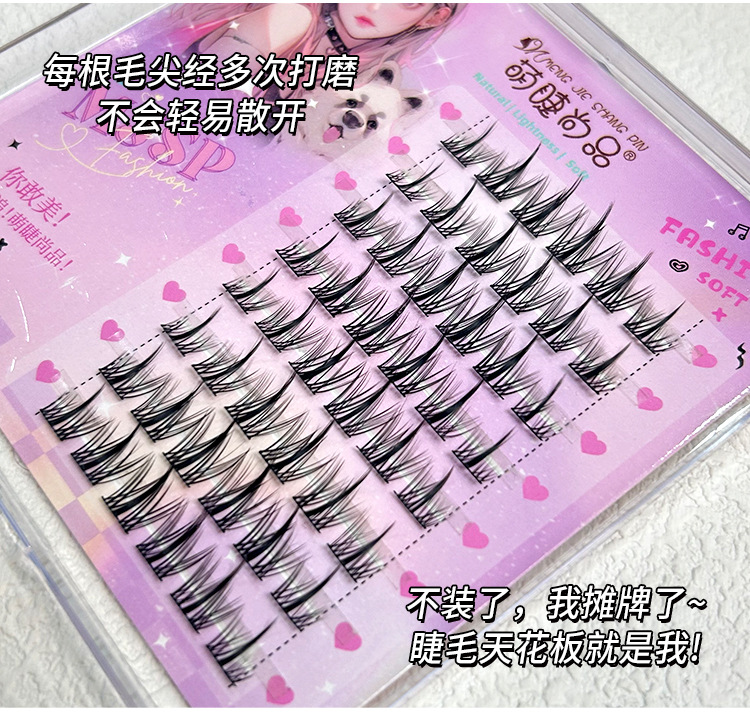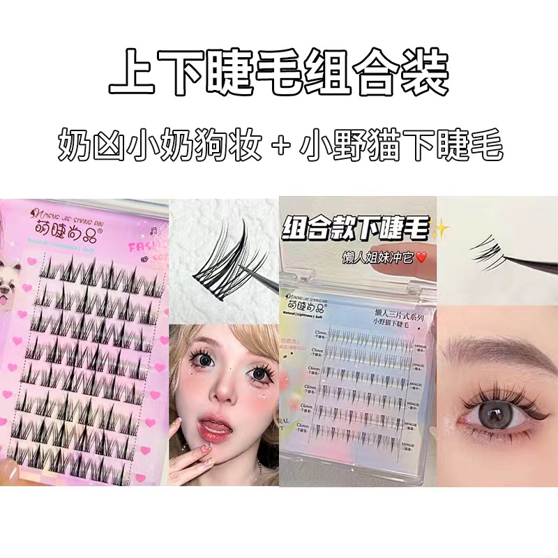 萌睫尚品懒人奶凶小奶狗妆假睫毛自然漫画芭比卷翘单簇分段式显睫