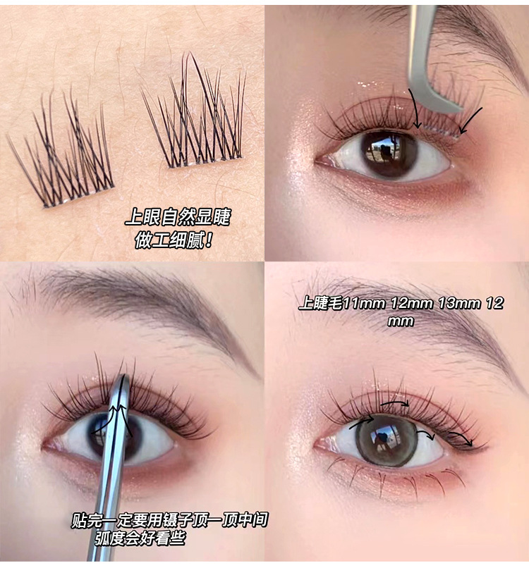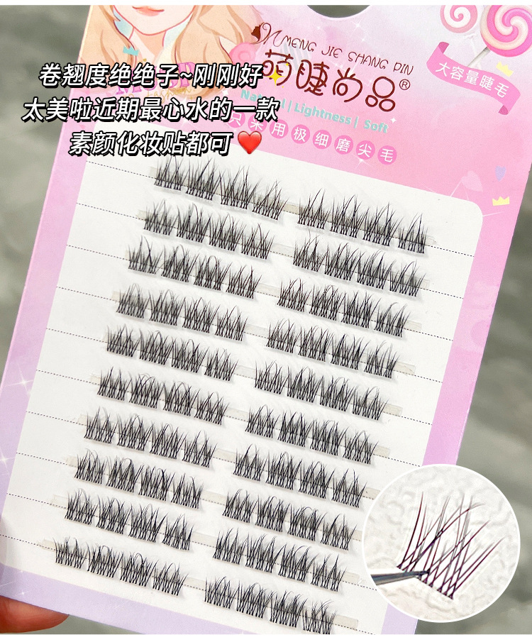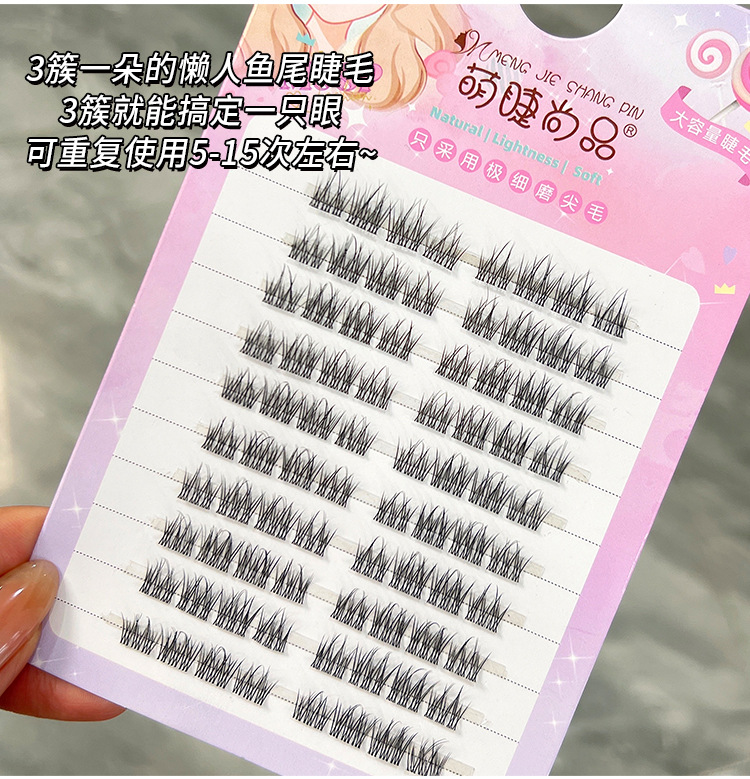 萌睫尚品懒人三部曲鱼尾睫空气透明梗自然漫画芭分段式单簇假睫毛